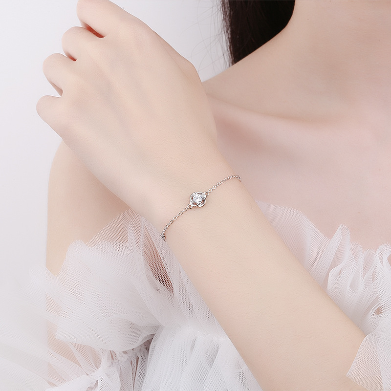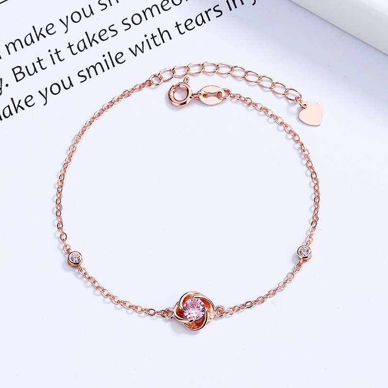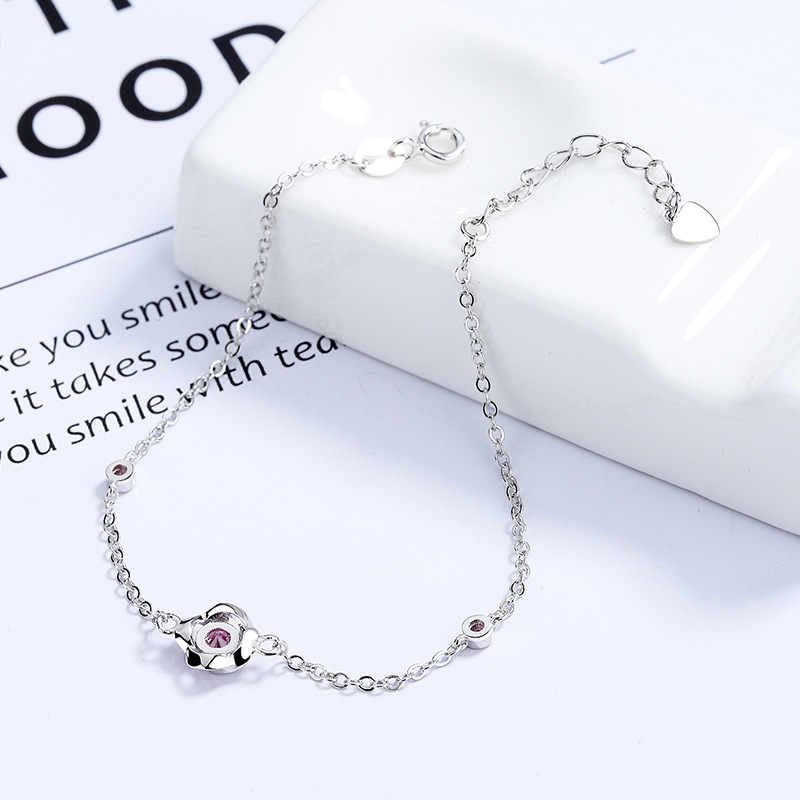 925纯银幸运四叶草粉水晶手链女韩版简约ins小众设计个性闺蜜手饰