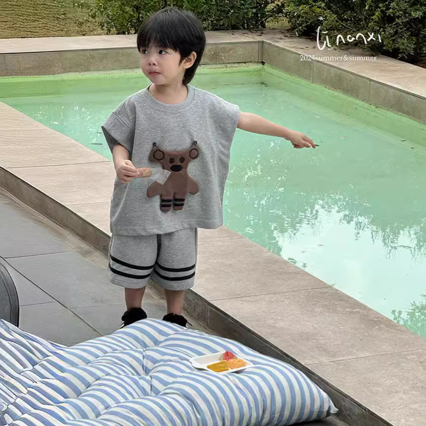 男童套装24年夏新款男女童可爱挂件两件套出街凹造型必备T恤+中裤