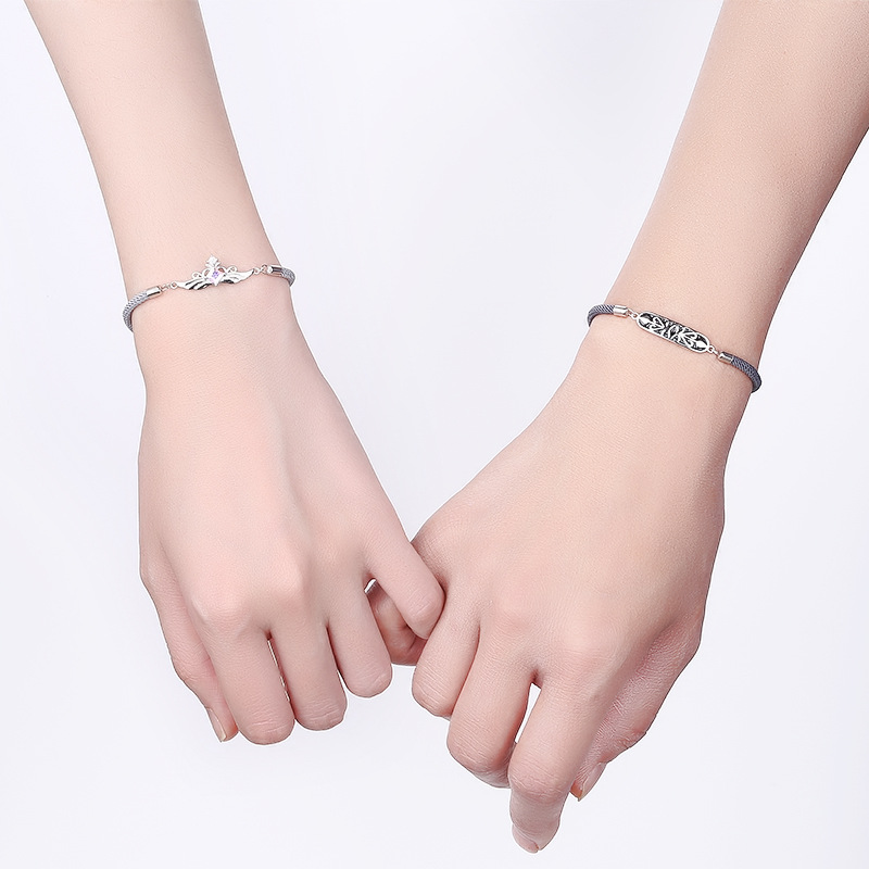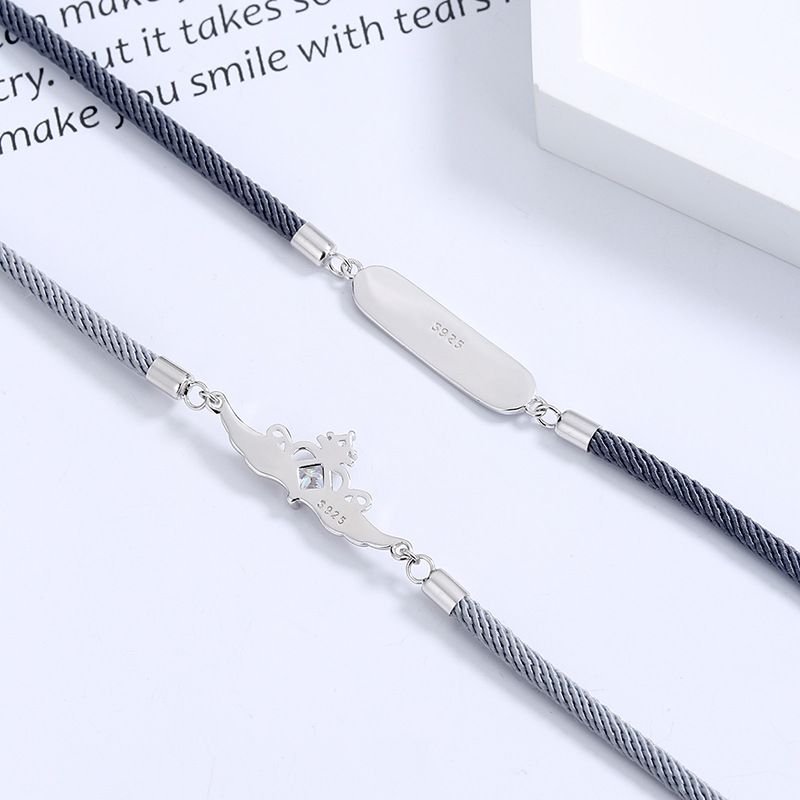 925纯银公主与骑士情侣手链男女生ins小众设计高级感编织手绳礼物