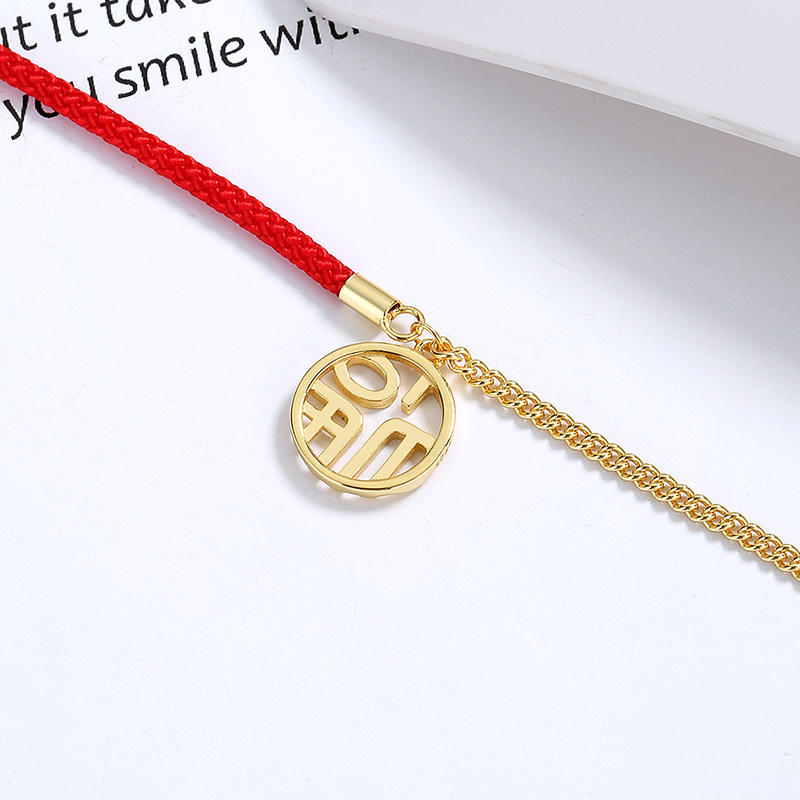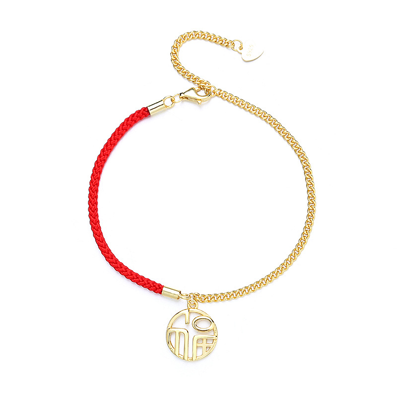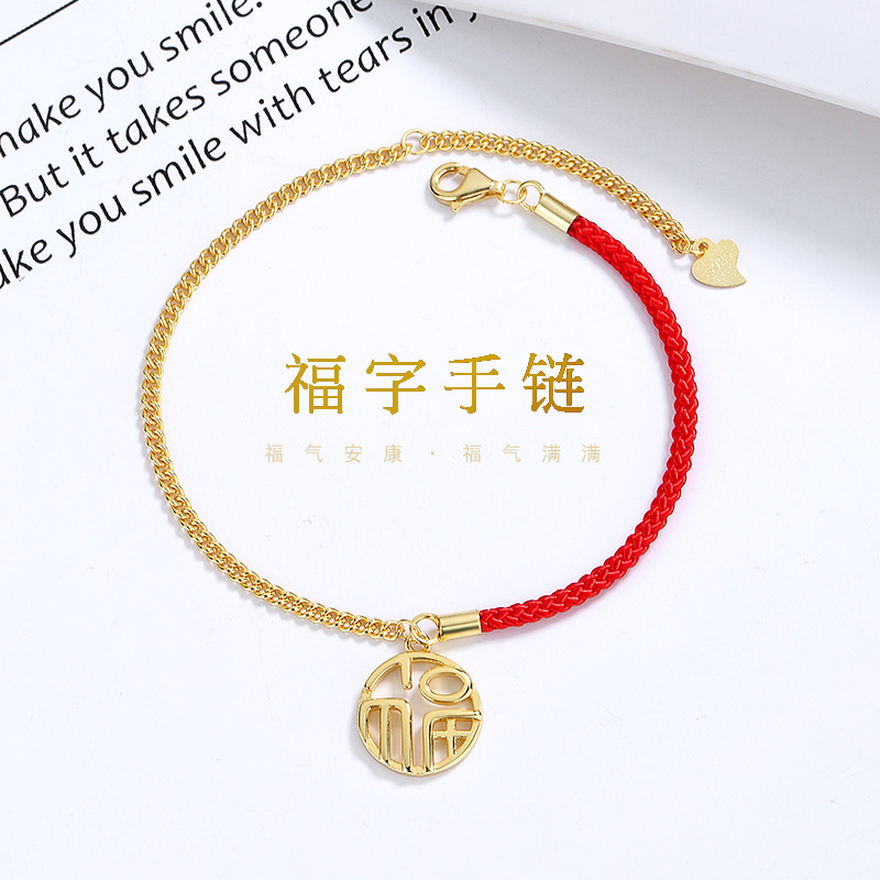 福字手链女925纯银新款个性设计感小福牌编织红手绳新年礼物