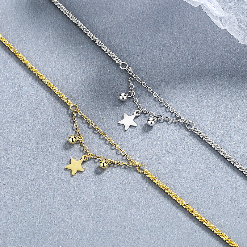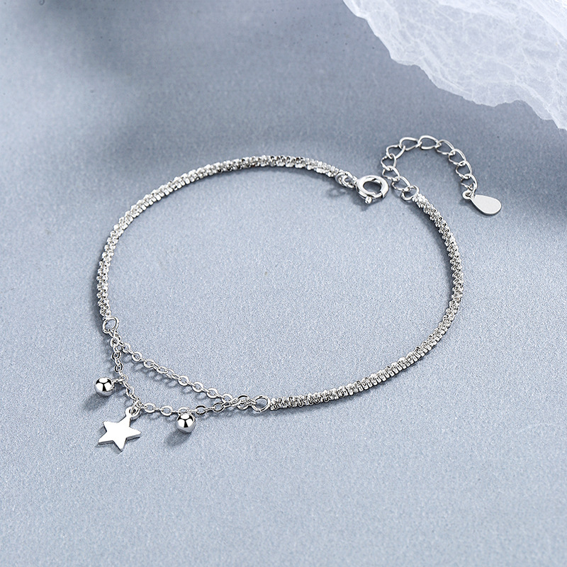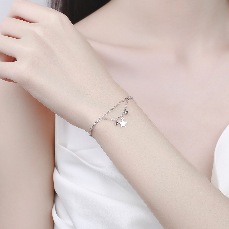 双层星星波光粼粼手链女925纯银简约ins星河爆闪手饰品送闺蜜礼物