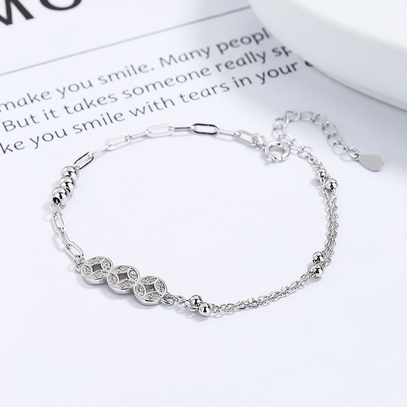 925纯银铜钱手链女夏新款小众设计感手饰简约ins风高级感饰品