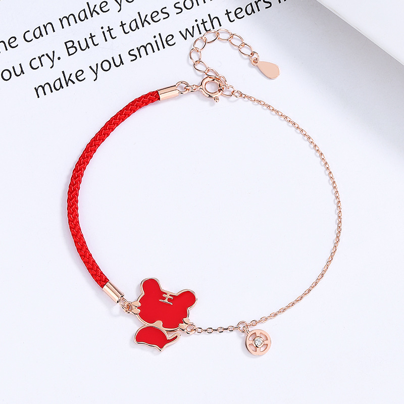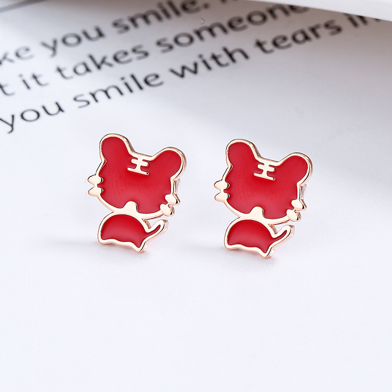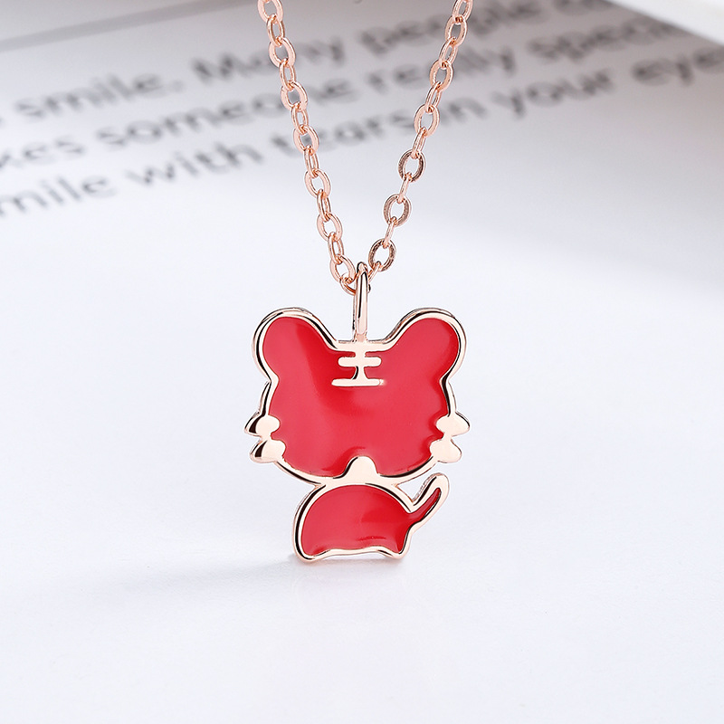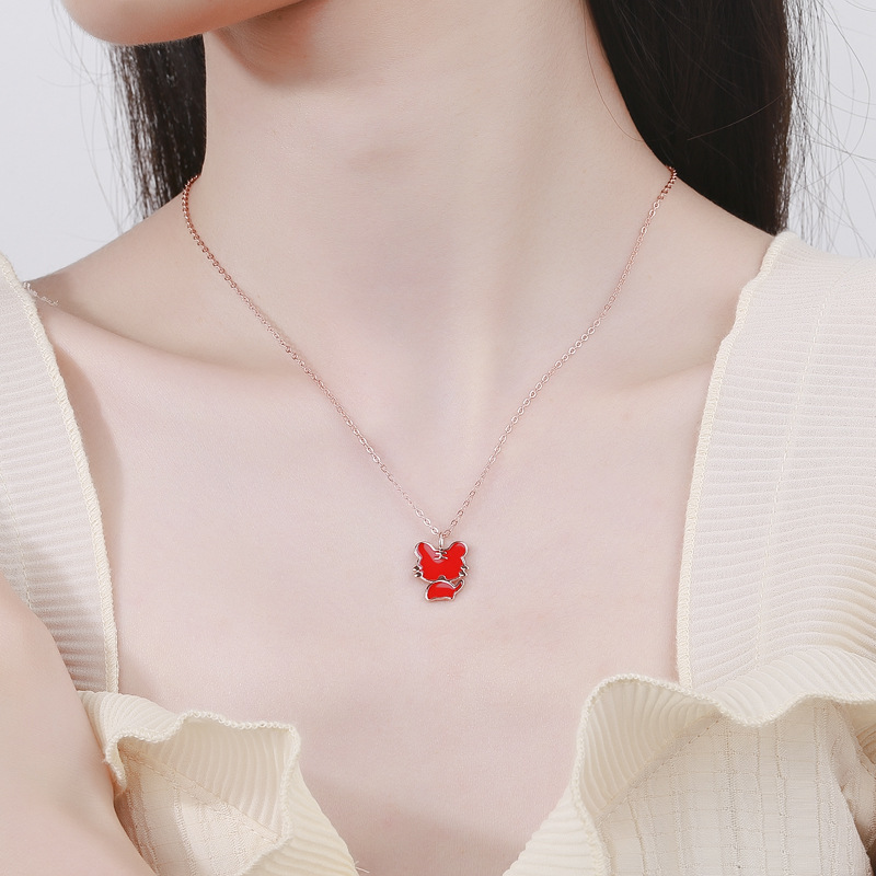 925纯银老虎红绳手链女小众轻奢虎年项链耳环套装国潮风时尚饰品