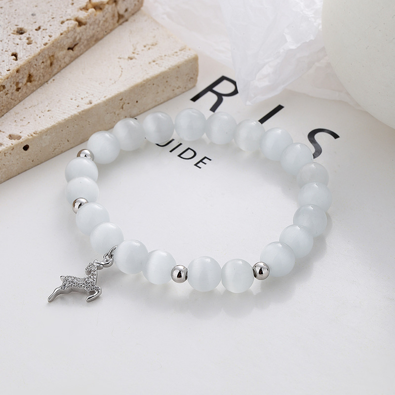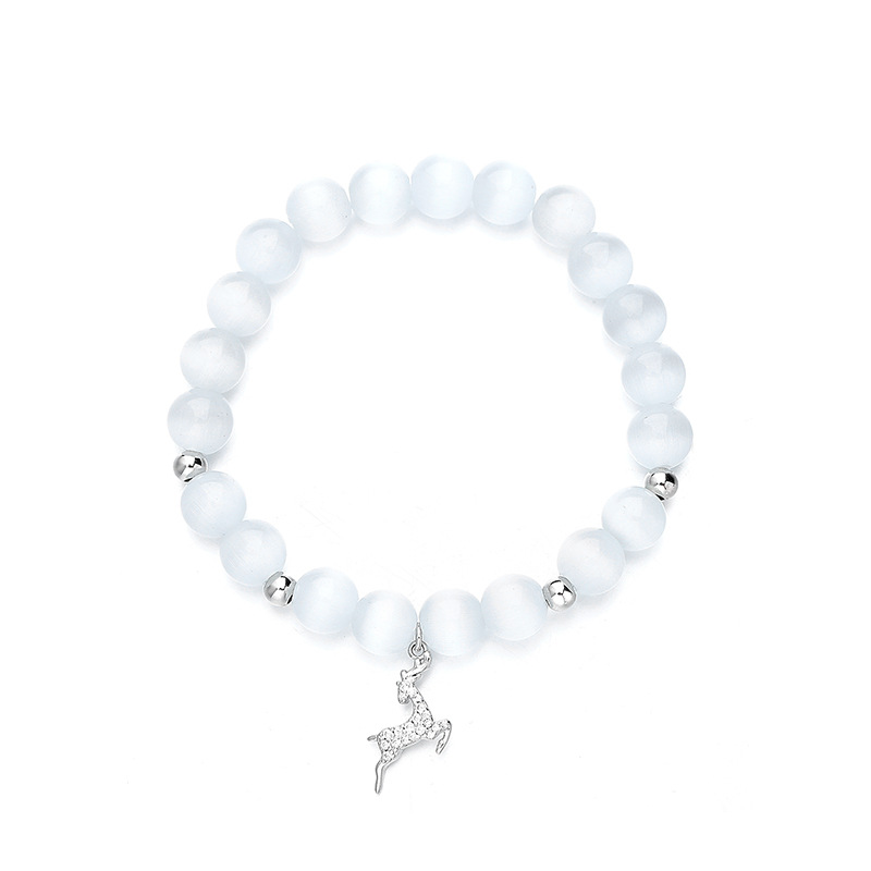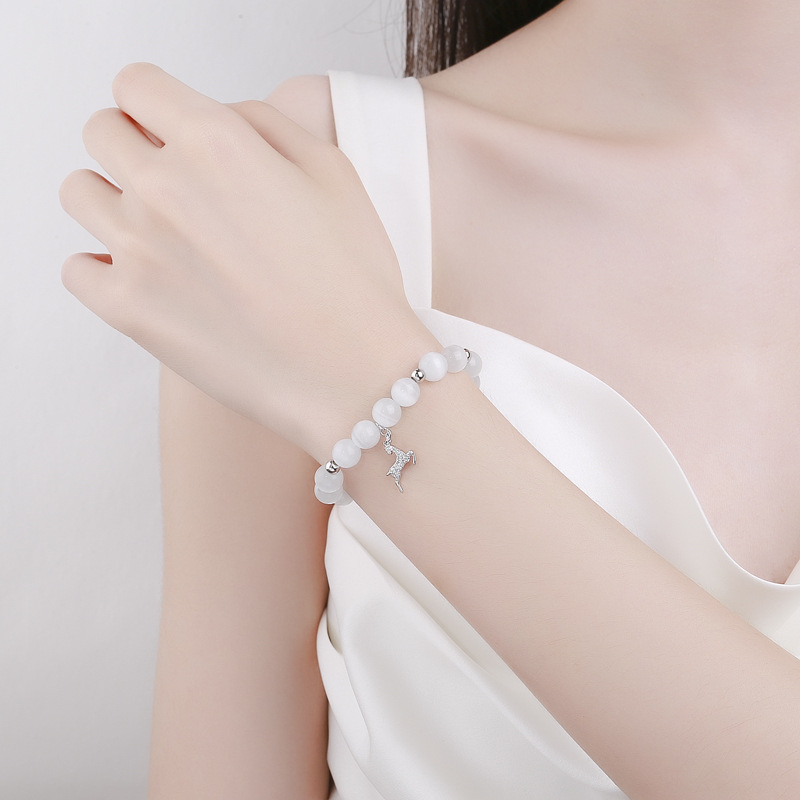 925纯银月影鹿踪手链女新款麋鹿月亮猫眼石手链个性设计感ins饰品