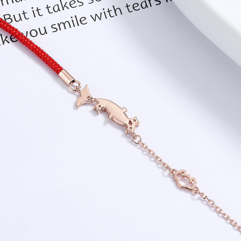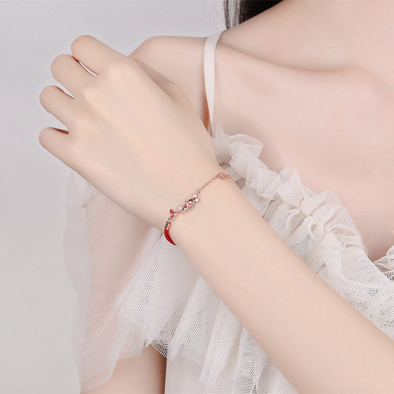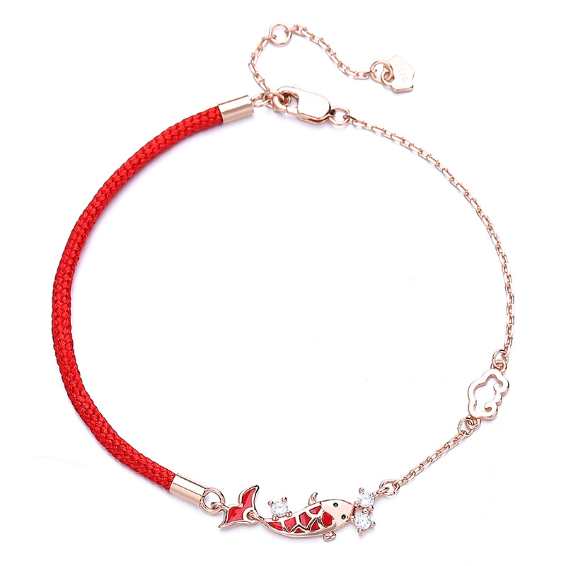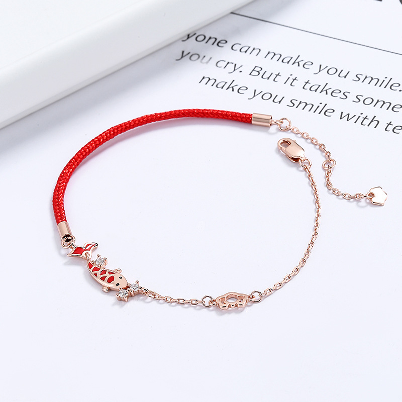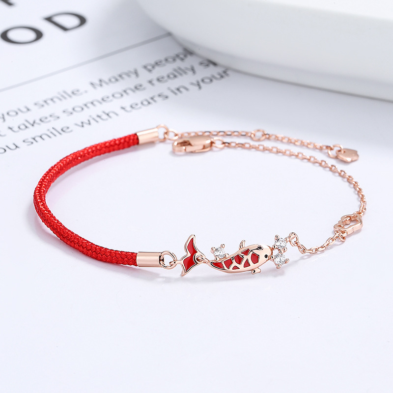 925纯银上岸锦鲤手链女小众设计感编织红绳七夕情人节礼物送女友
