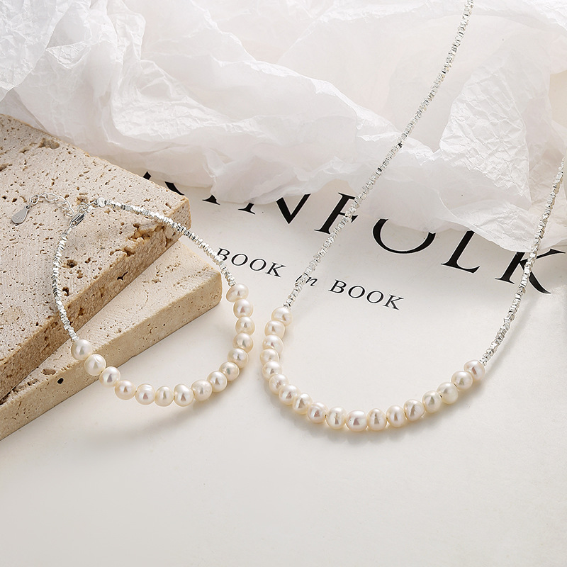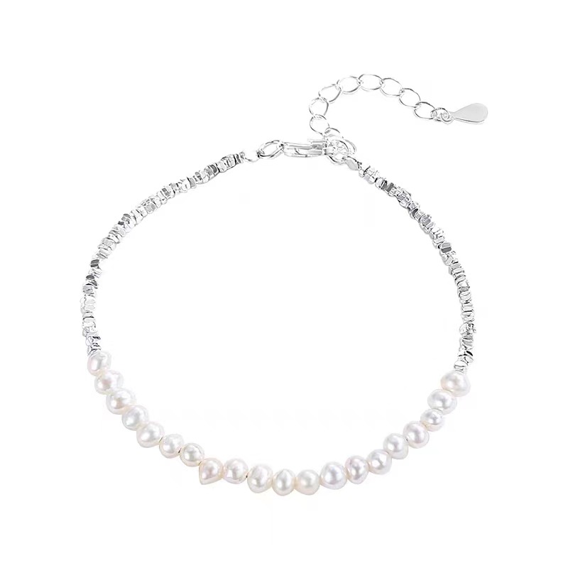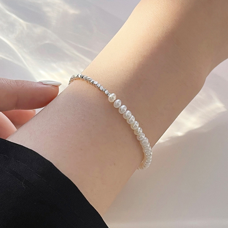 925纯银碎银子珍珠手链女轻奢小众设计珍珠手链冷淡风气质手饰品
