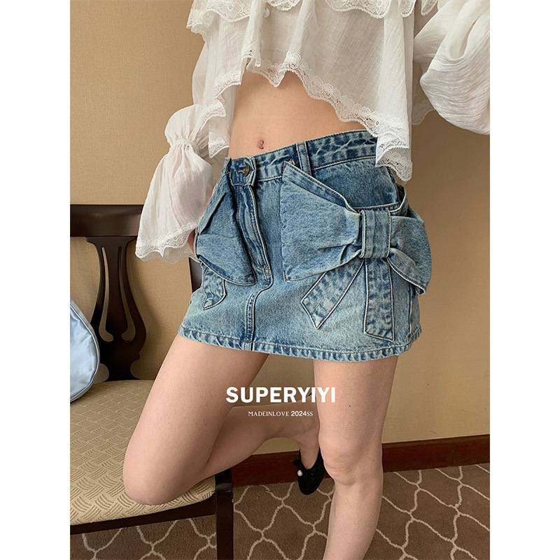SUPERYIYI十三行春夏蝴蝶结装饰设计短裙休闲百搭牛仔半身裙22192