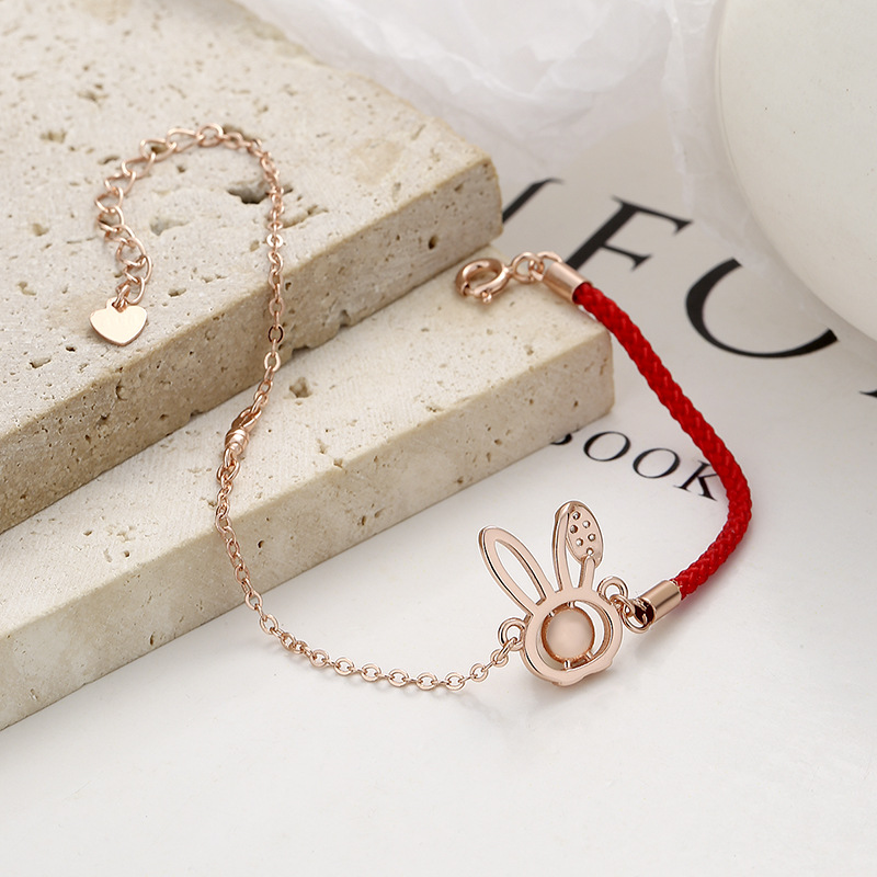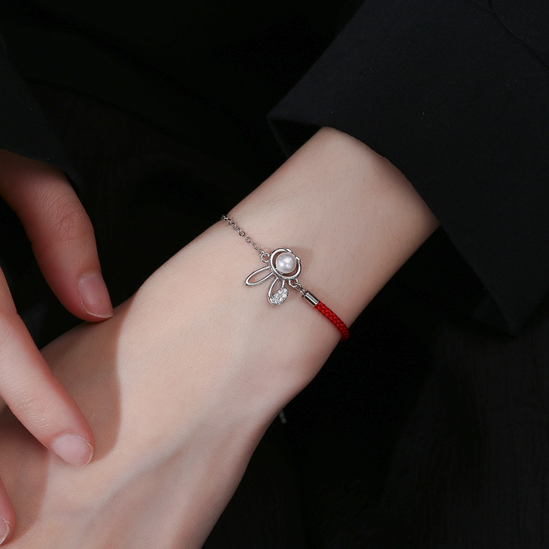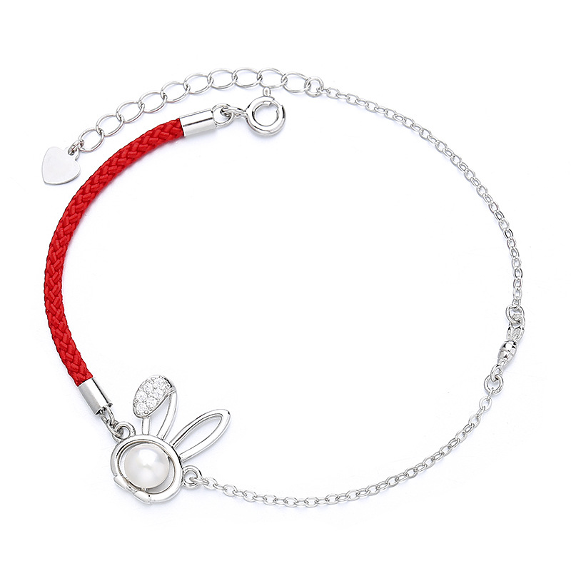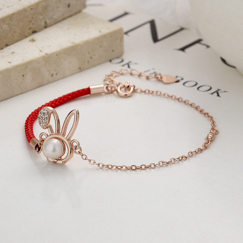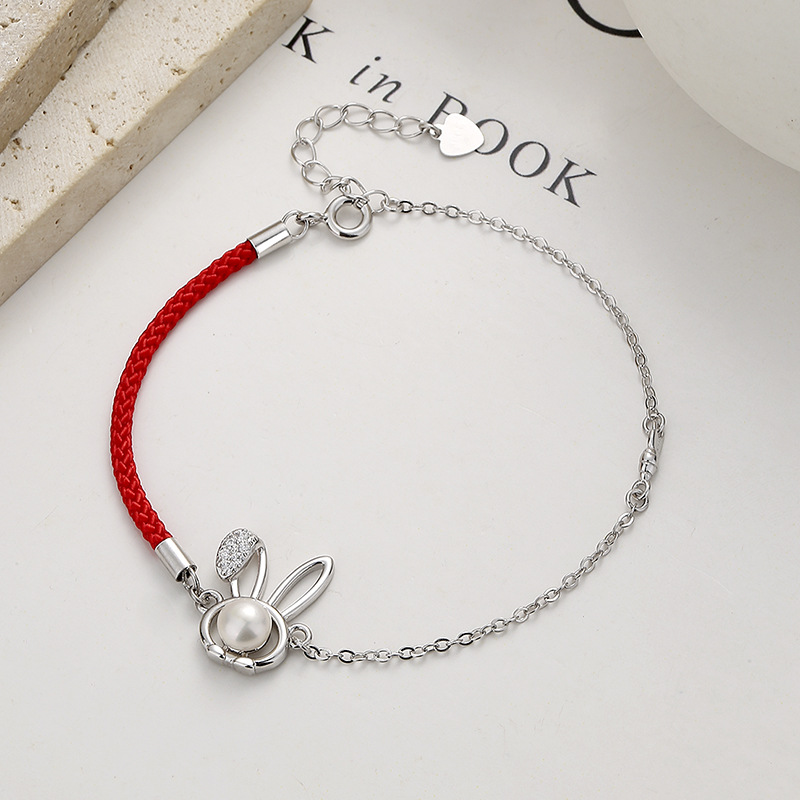 925纯银兔子珍珠手链女国风编织红绳手链个性气质ins高级感手饰品