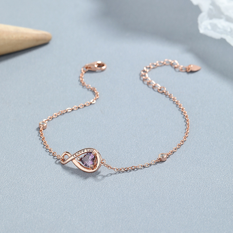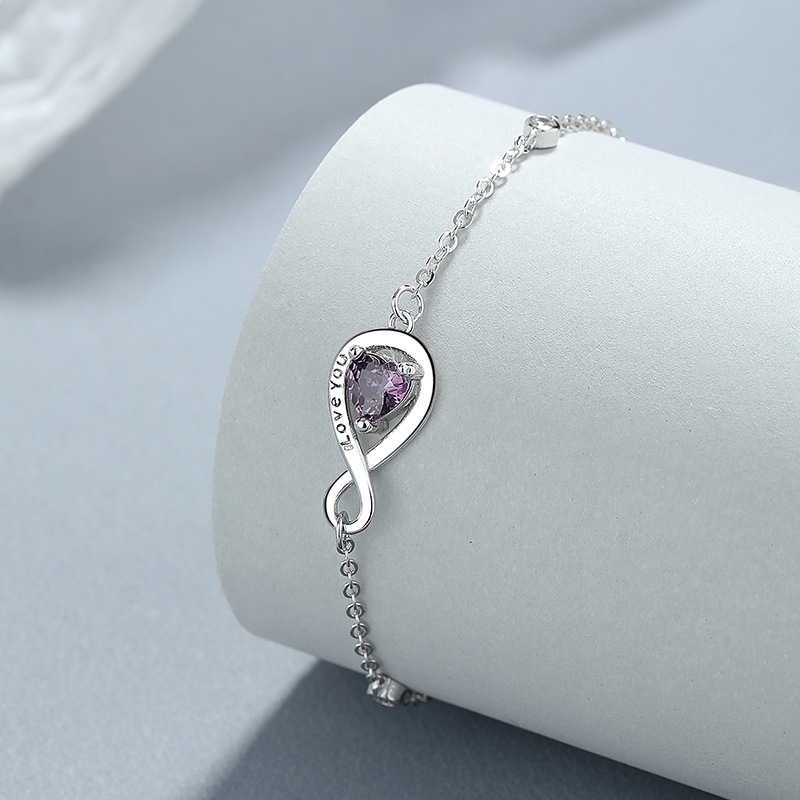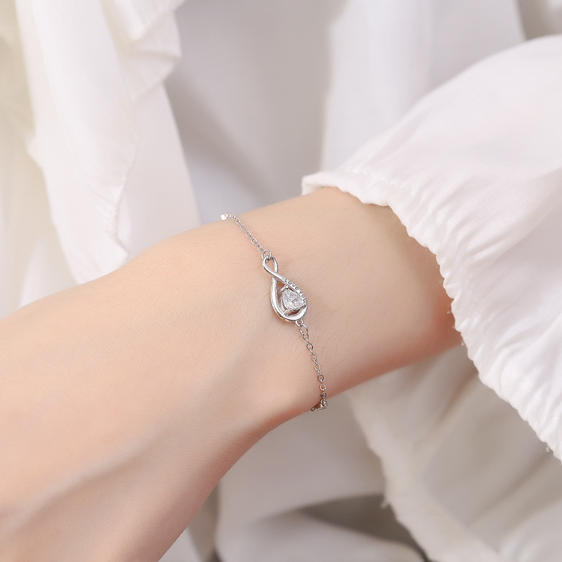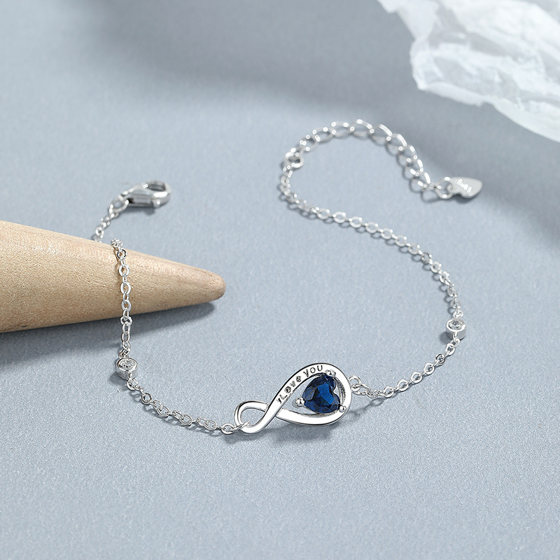 925纯银8字爱心锆石手链女个性设计感彩色锆石手饰简约气质银饰品