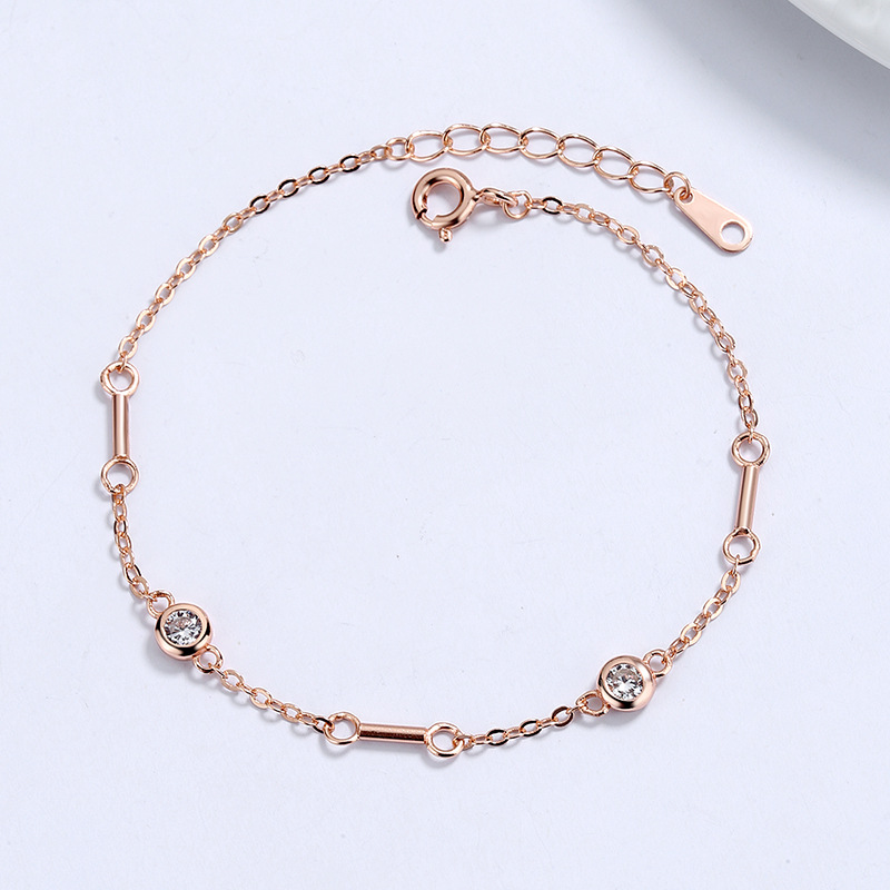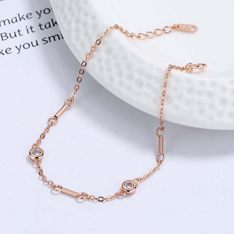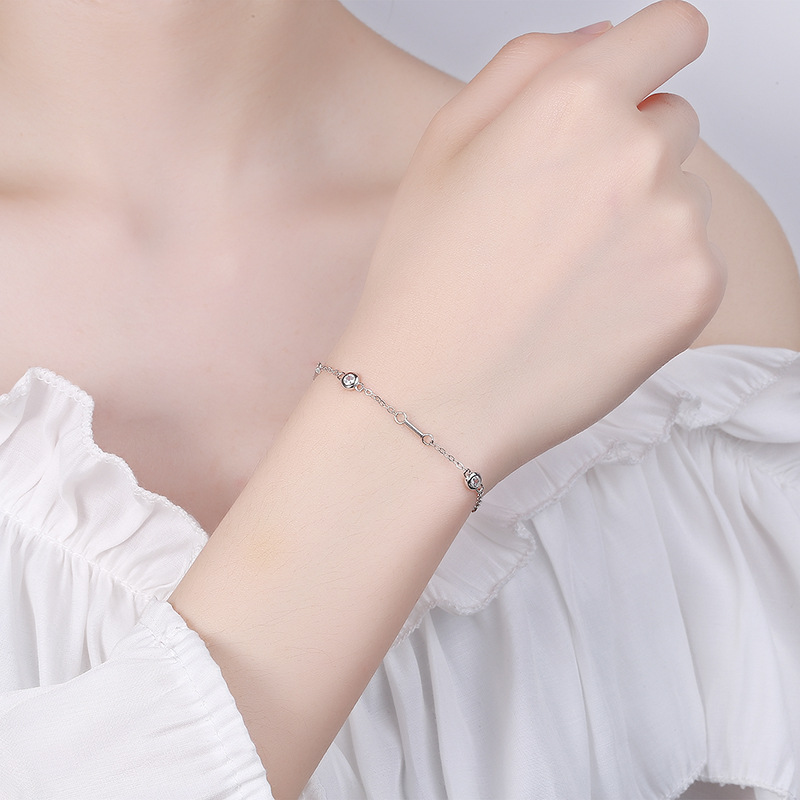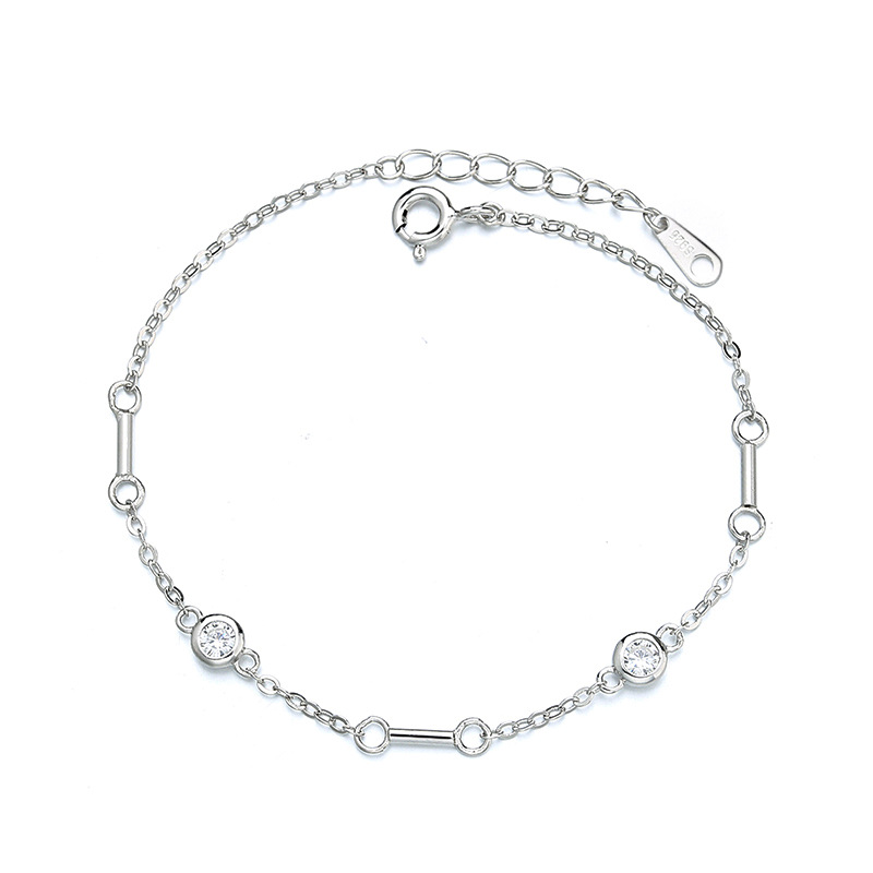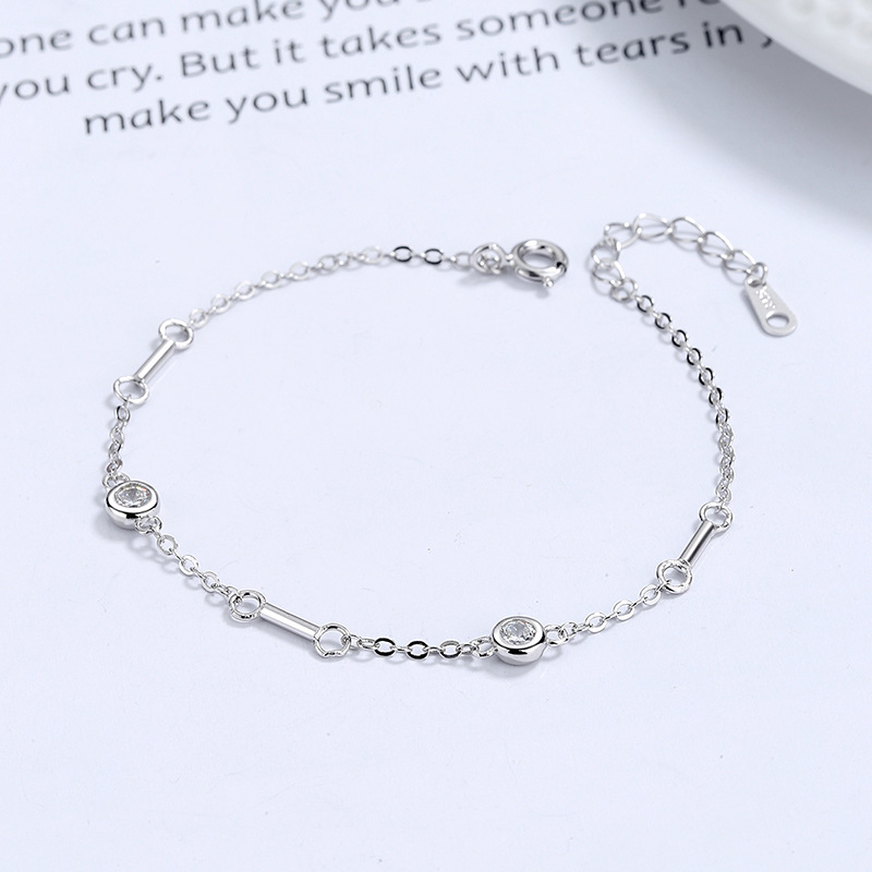 925纯银圆形锆石细手链女ins日韩版简约个性极简小清新闺蜜手饰品