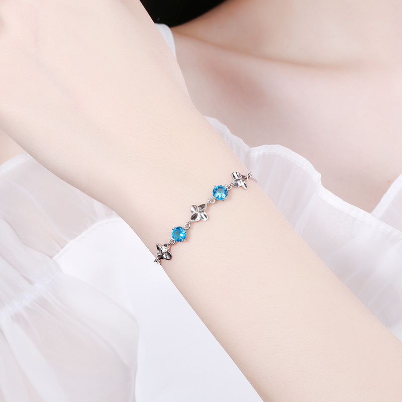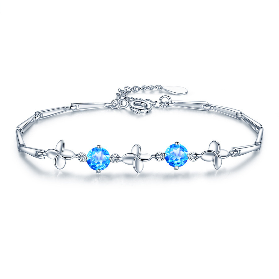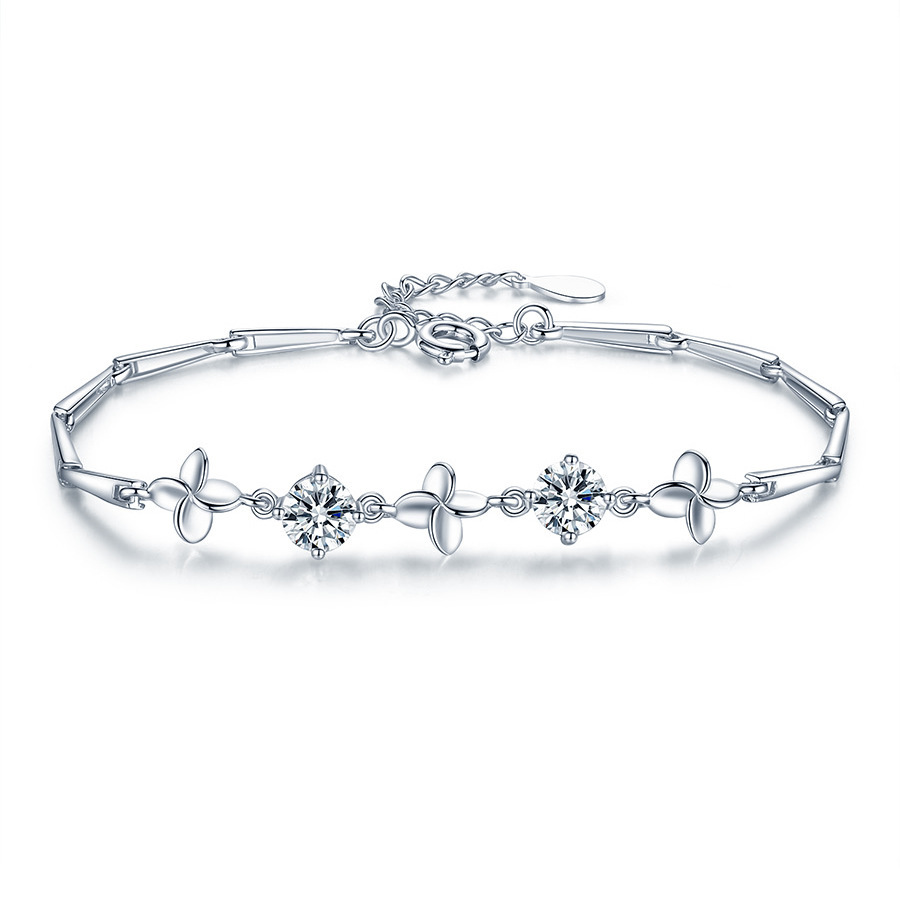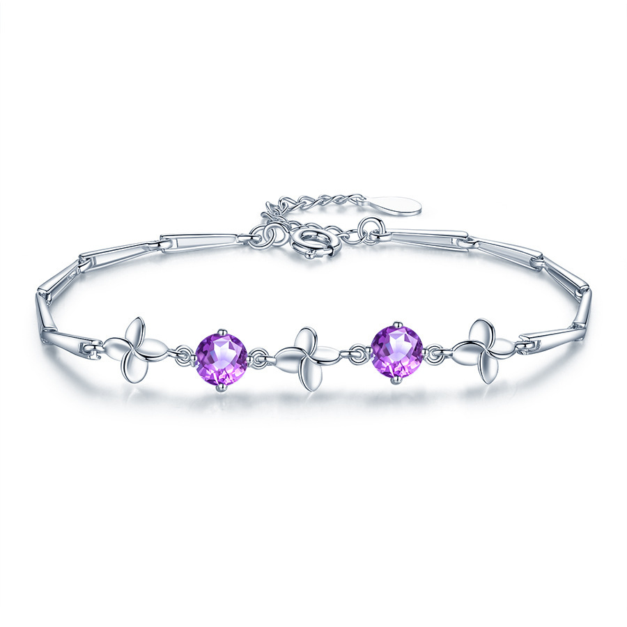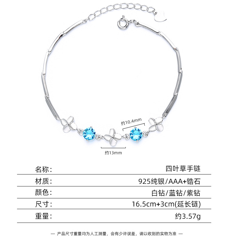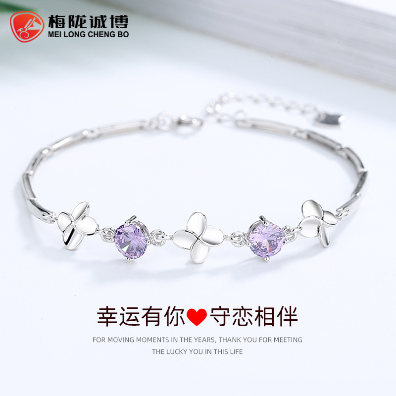 四叶草锆石手链女925纯银简约小众设计高级感紫水晶手饰品送闺蜜