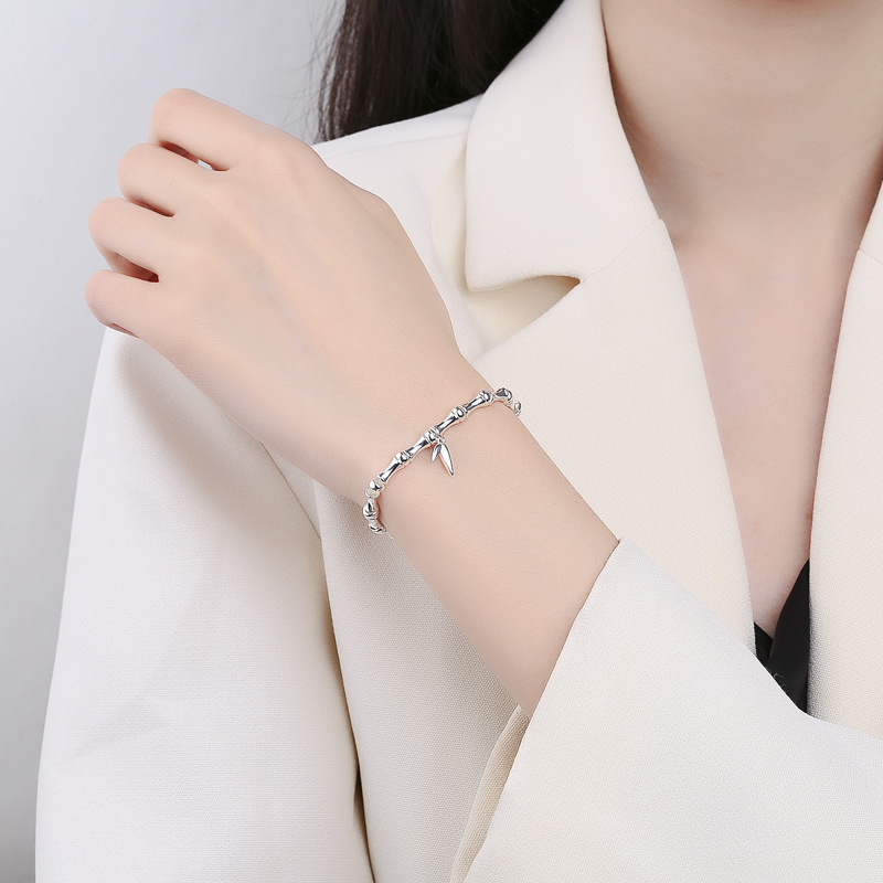 925纯银竹节手链女新款时尚小清新竹叶手饰个性气质简约ins手饰品