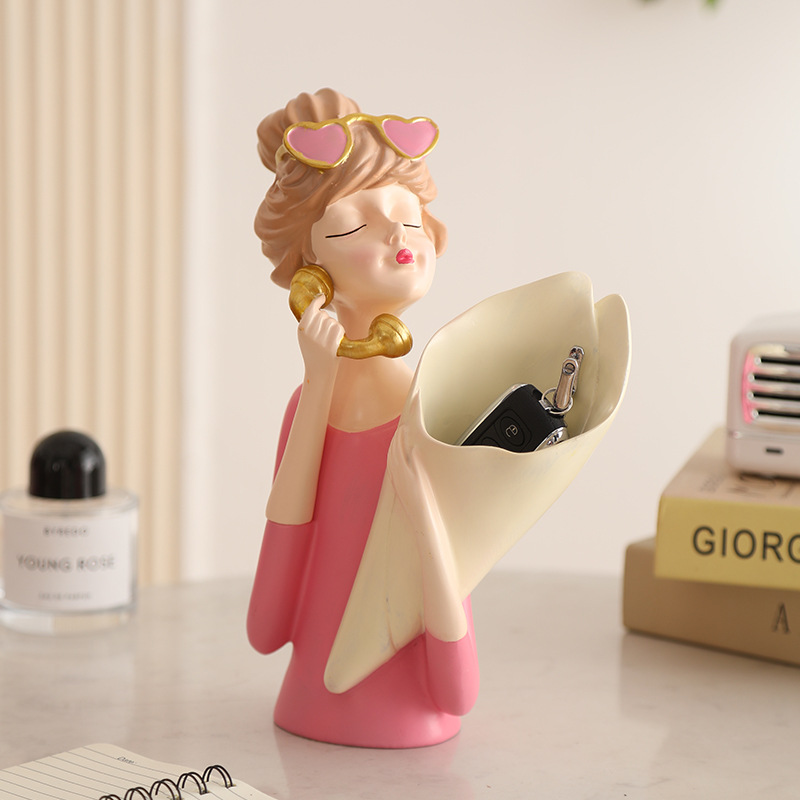 北欧捧花女孩艺术花瓶摆件创意客厅餐桌玄关电视柜家居插花装饰品