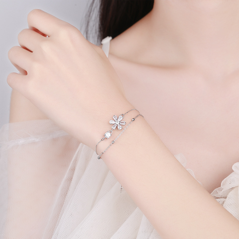 浪漫樱花手链女925纯银ins小众设计高级感轻奢闺蜜手饰圣诞礼物