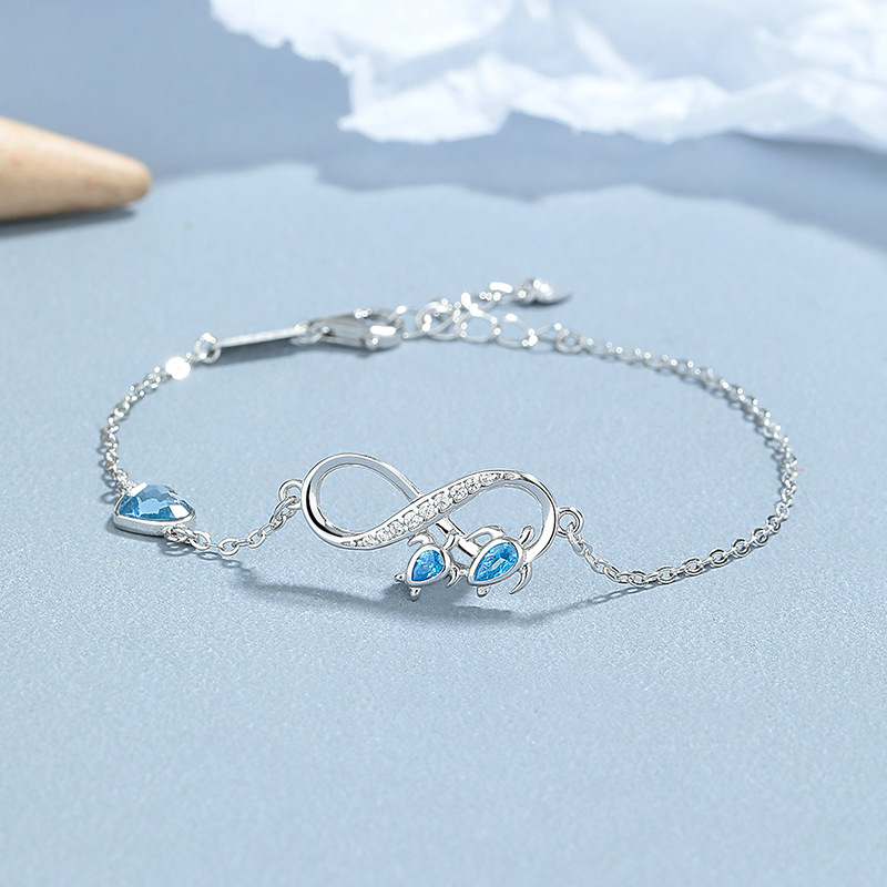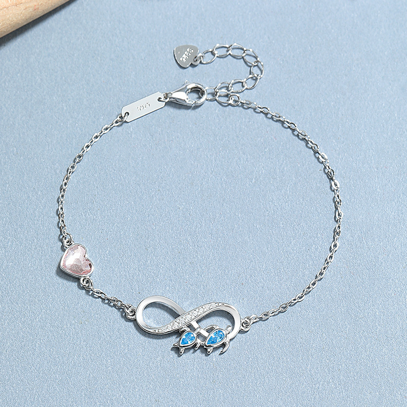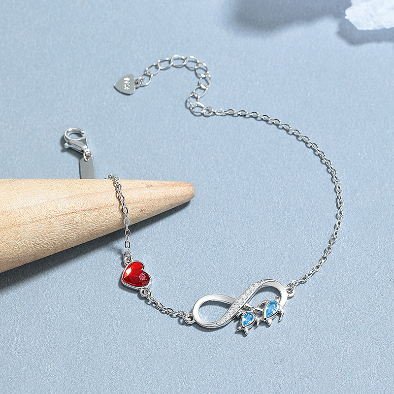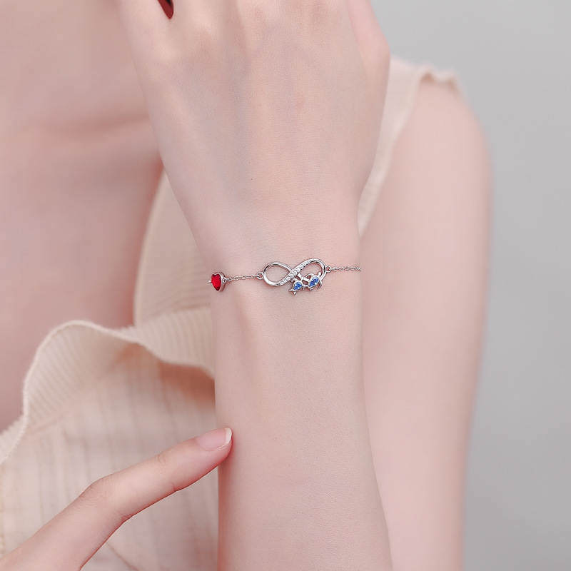 925纯银8字爱心锆石手链女个性时尚彩色心形锆石手饰ins气质饰品