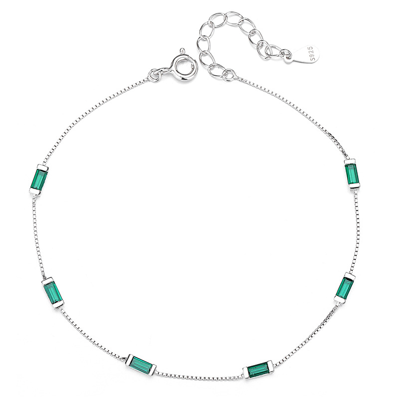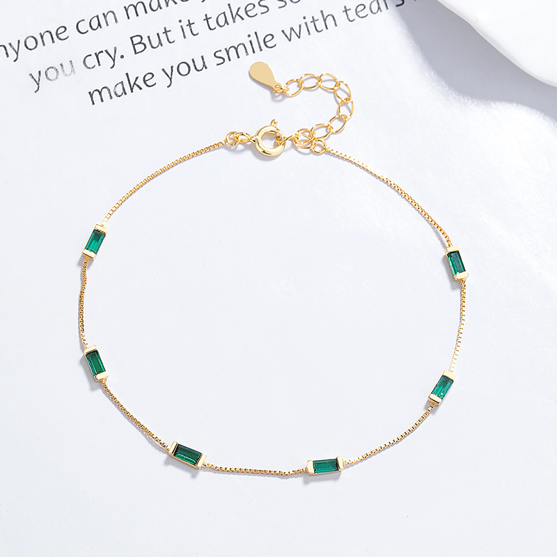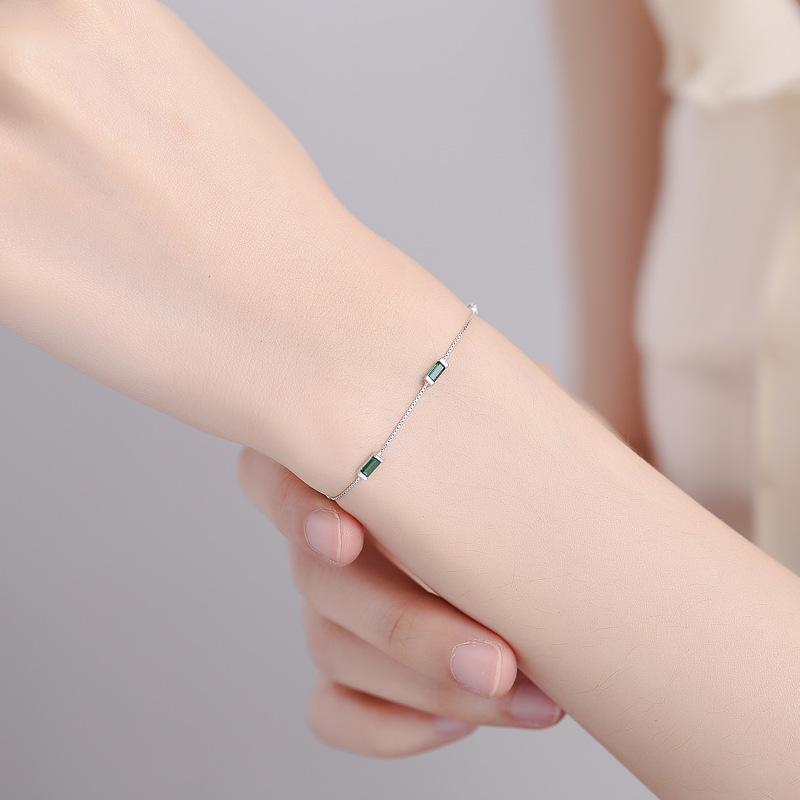 925纯银绿色方钻手链女简约ins方形绿钻盒子链手链时尚气质手饰品