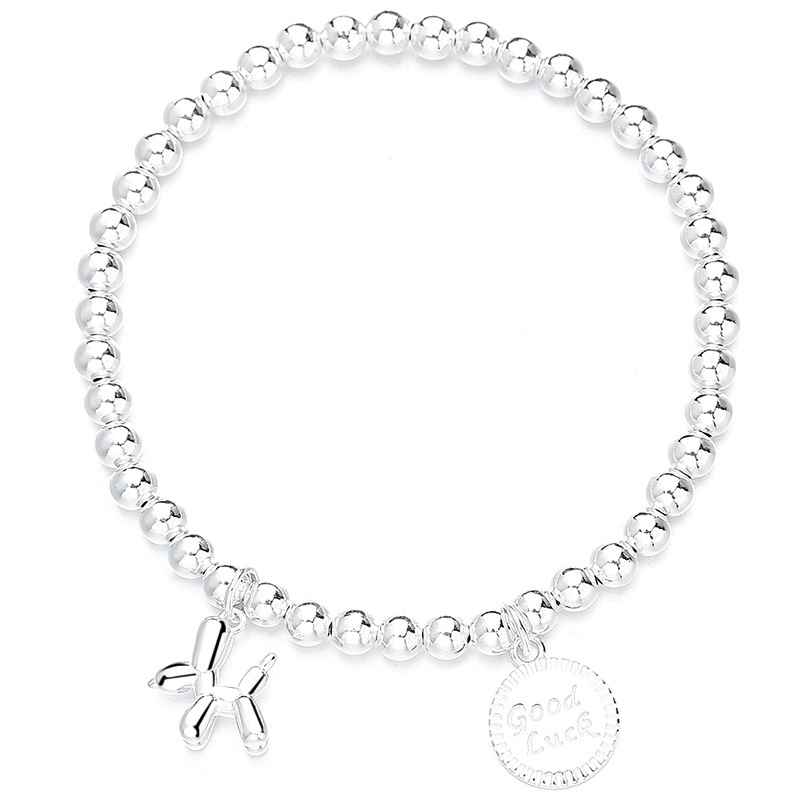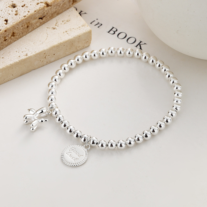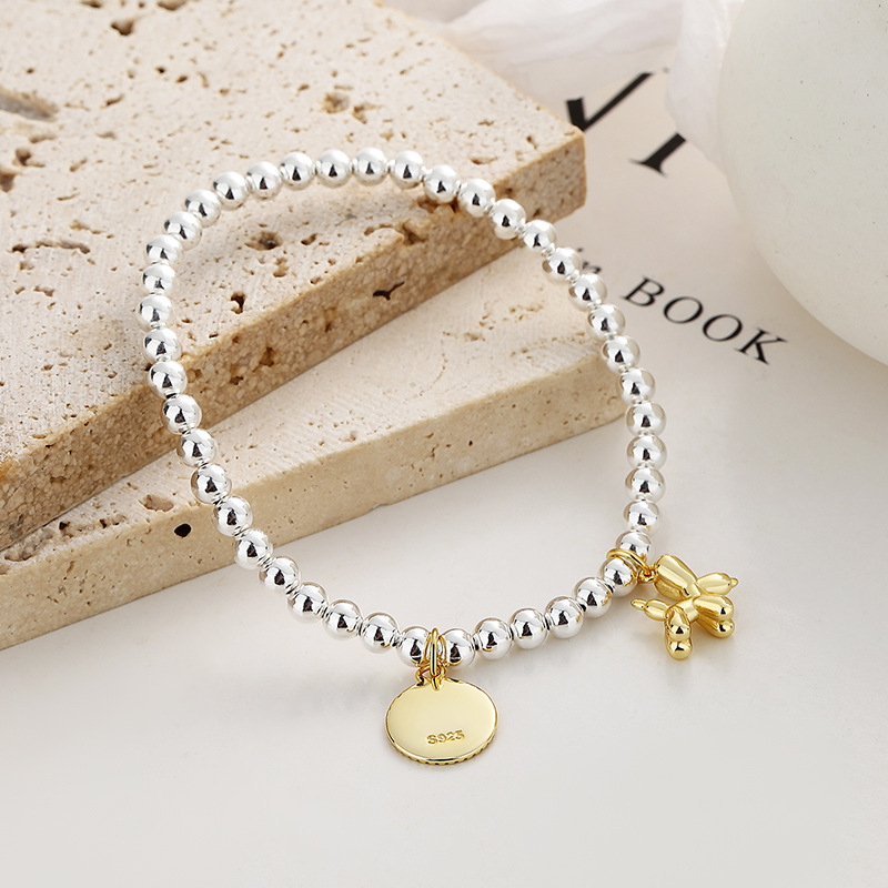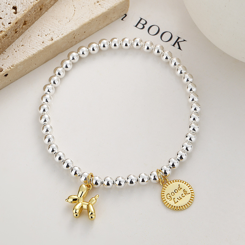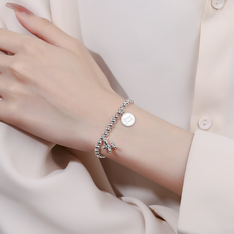 925纯银气球狗银珠手链女夏新款复古圆牌手链简约ins高级感手饰品