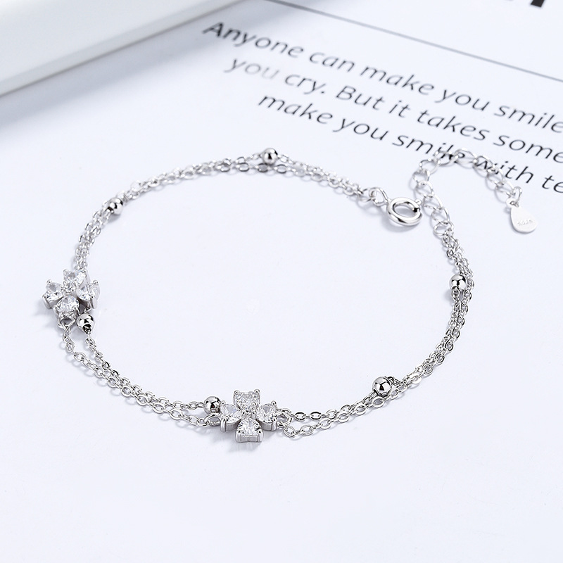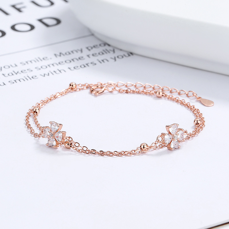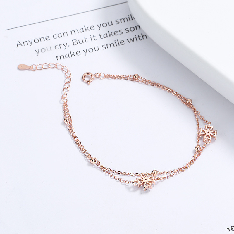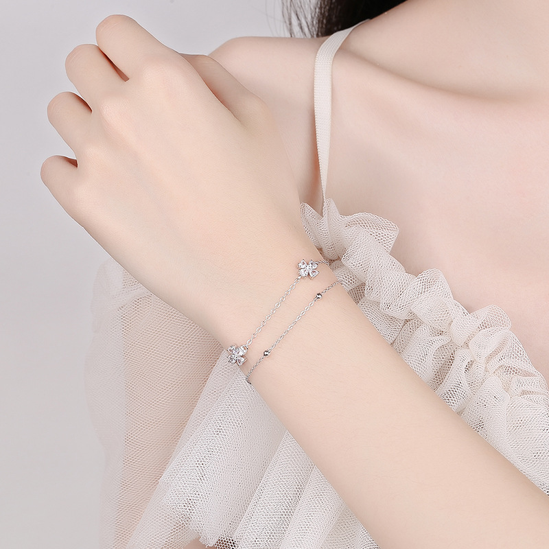 925纯银四叶草双层手链女夏新款简约百搭ins风手饰个性气质手饰品