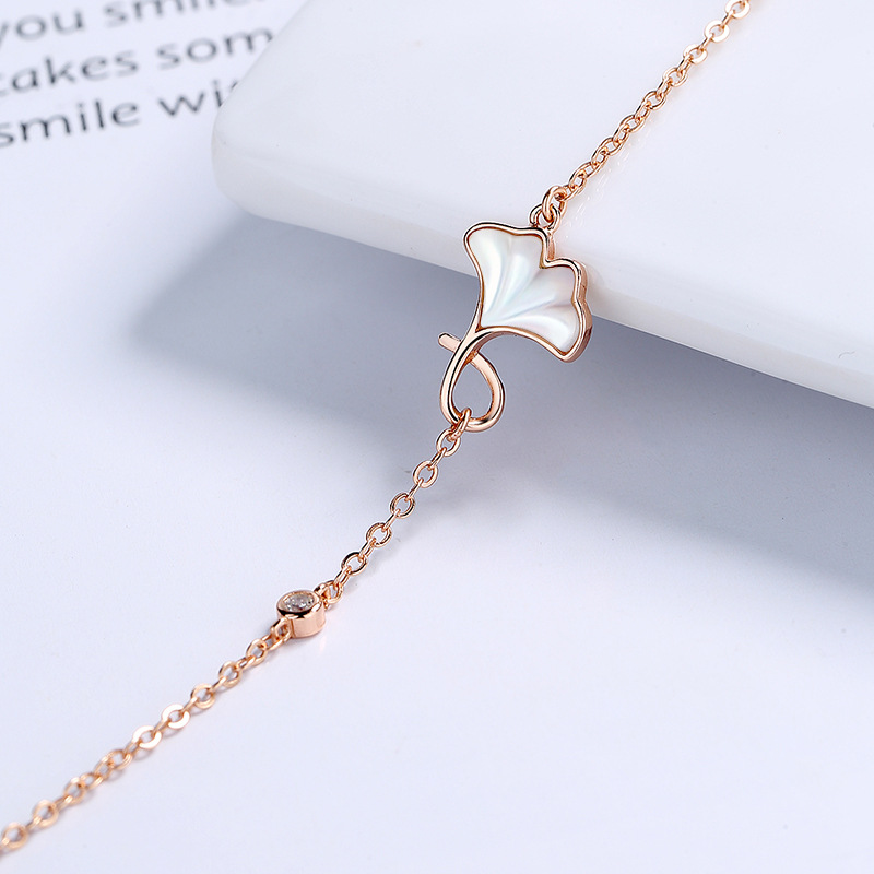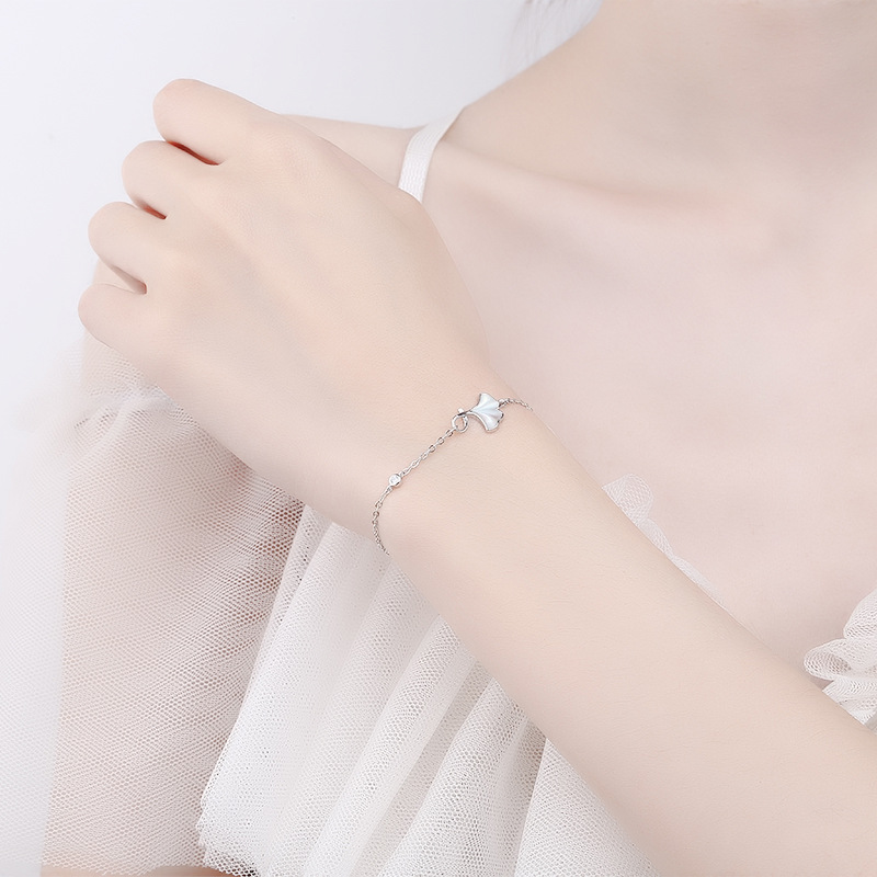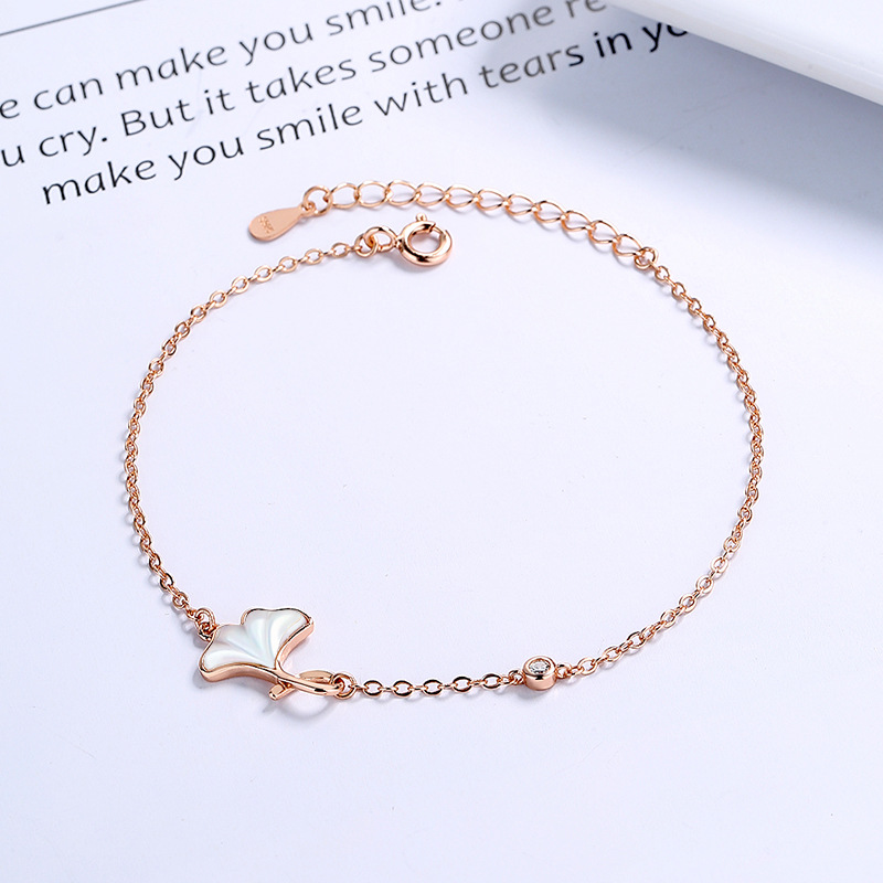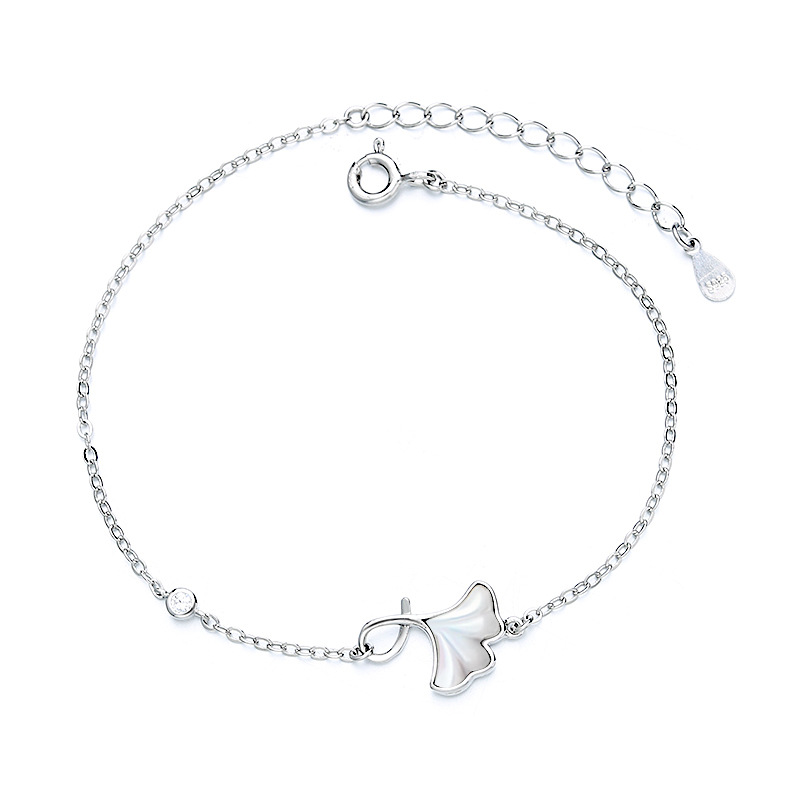 三生有幸925纯银杏叶手链女小众设计白贝母高级感简约ins闺蜜手饰