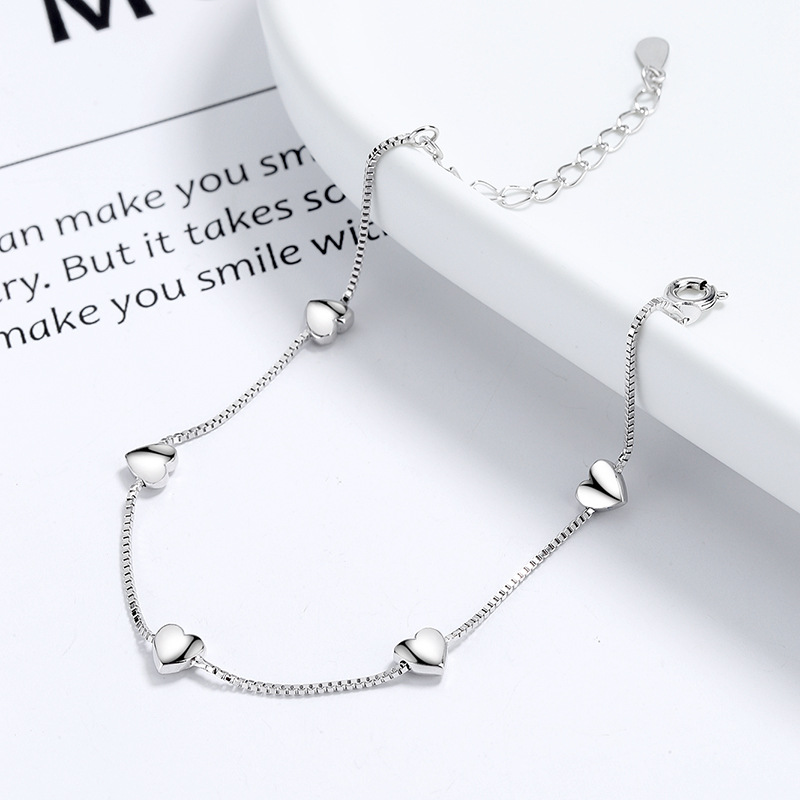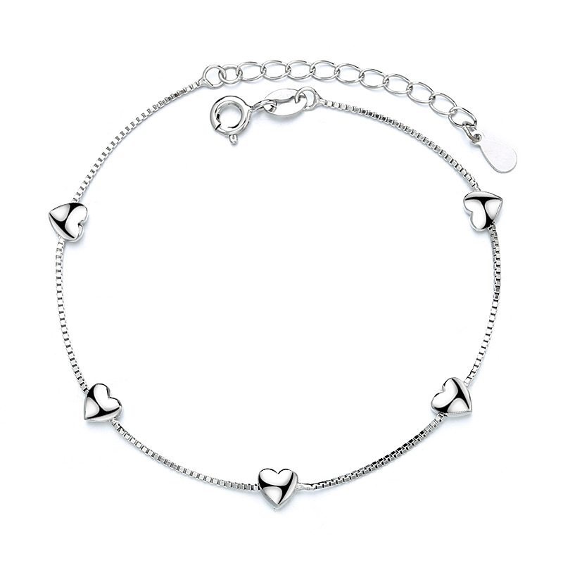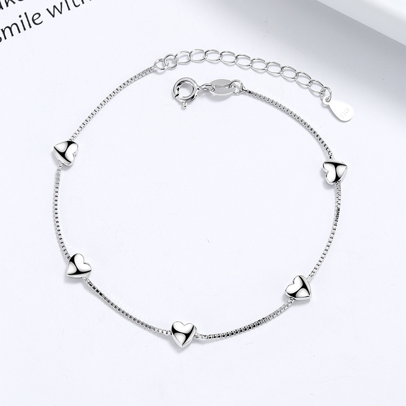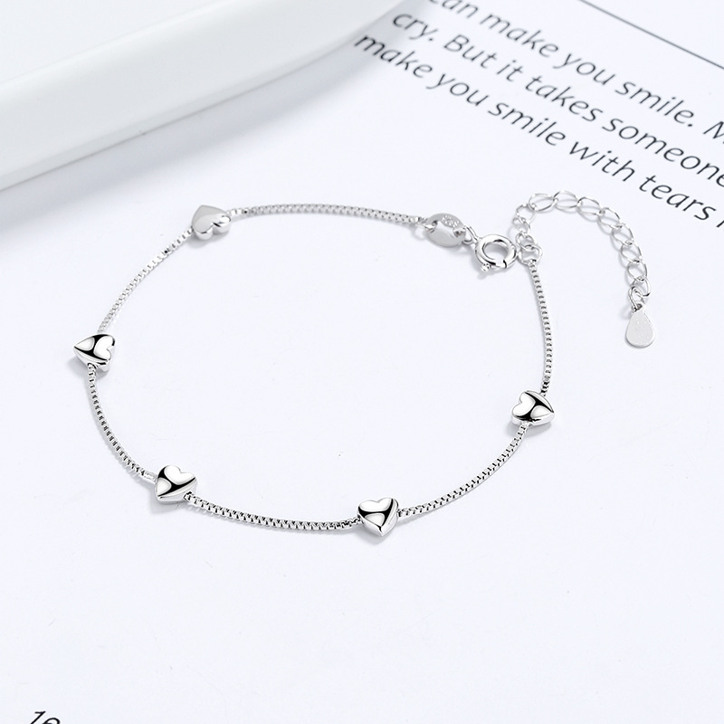 925纯银爱心盒子手链女ins冷淡风简约韩国版极简心形链手饰品银饰