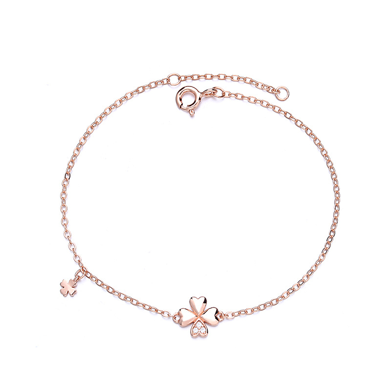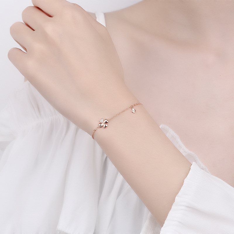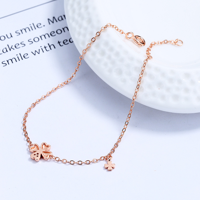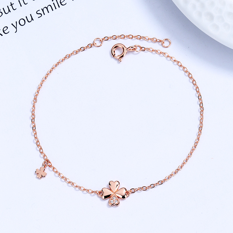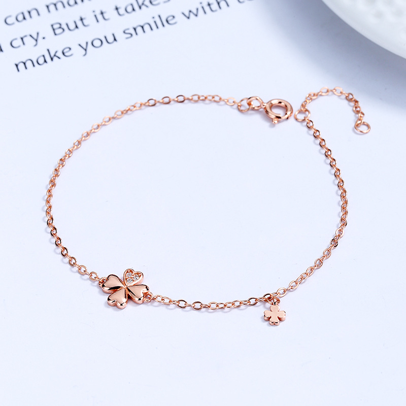 s925纯银幸运四叶草手链女ins小众设计玫瑰彩金花朵高级感手饰品
