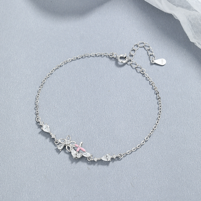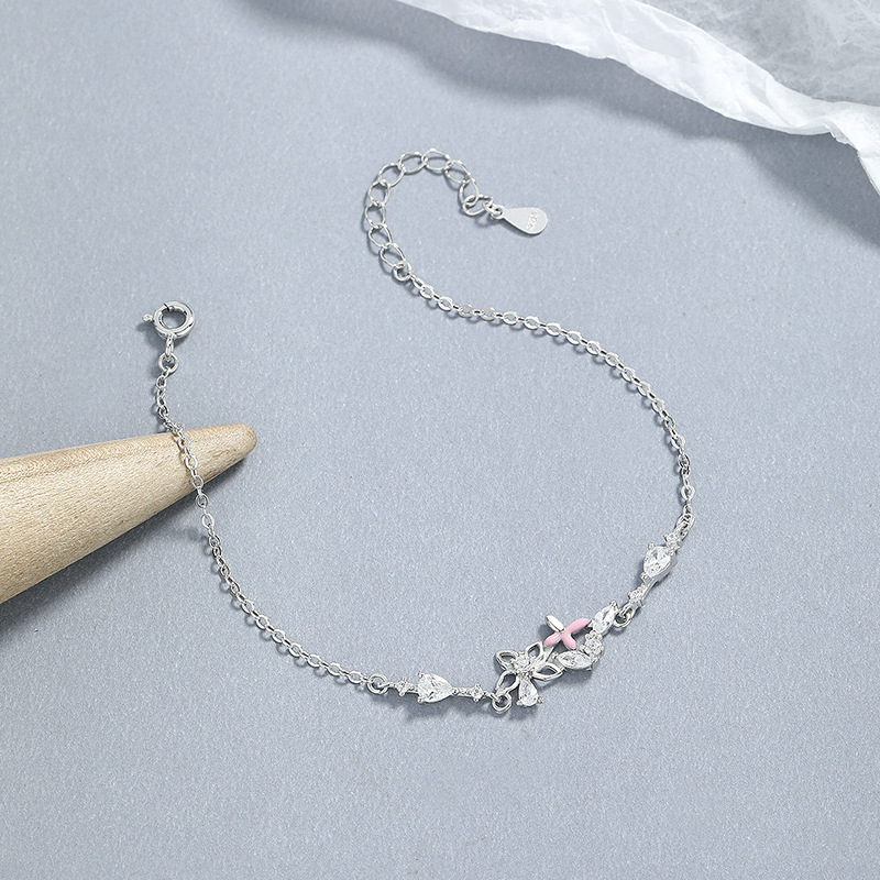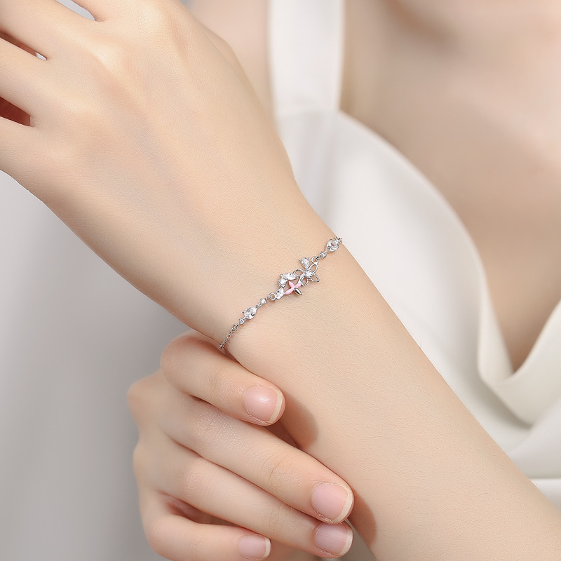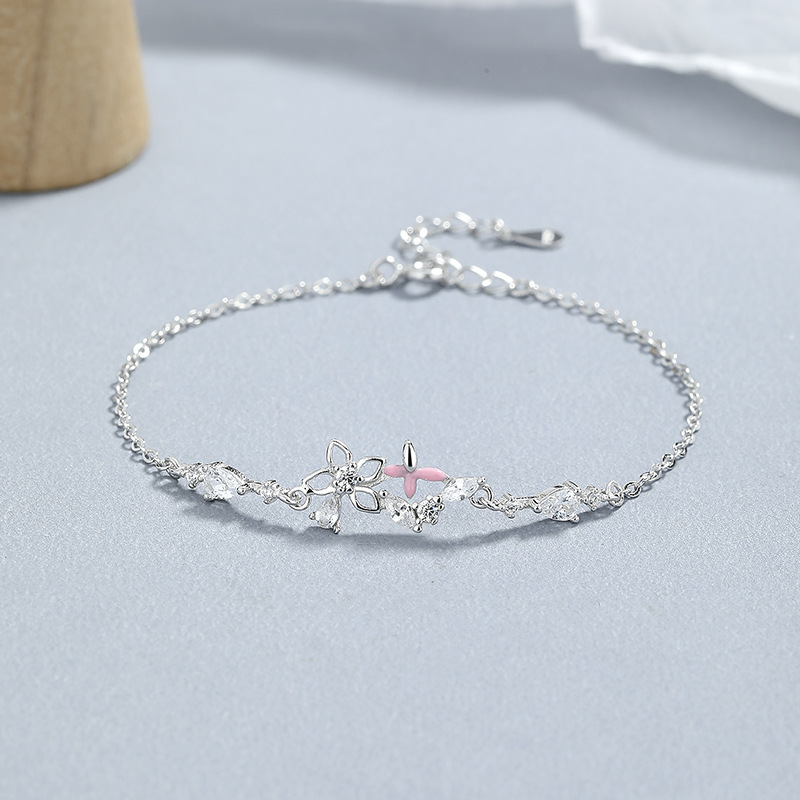 925纯银花朵手链女夏甜美时尚花朵锆石手链轻奢ins小众气质手饰品