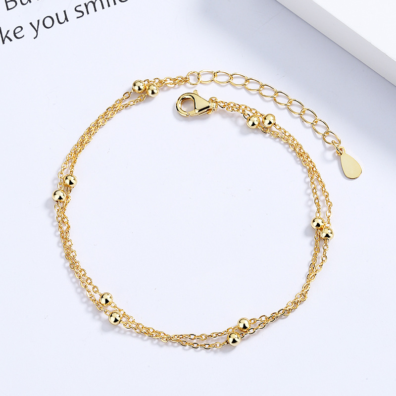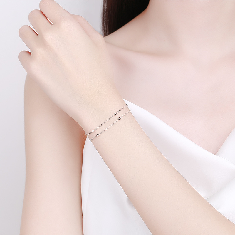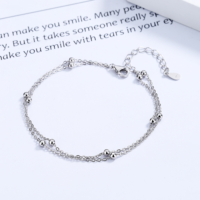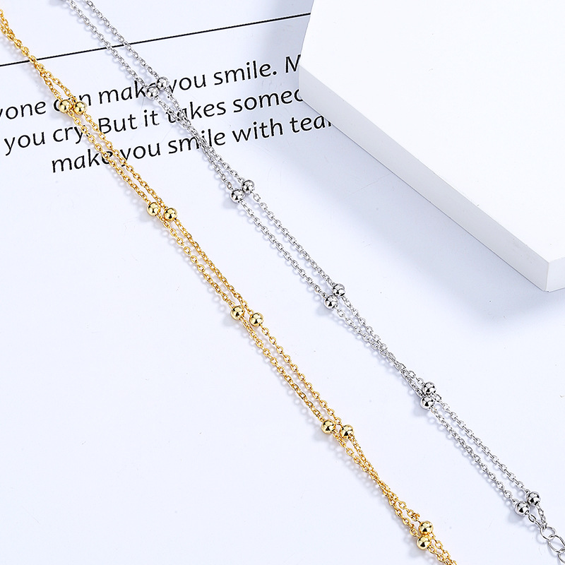 圆珠子双层手链女925纯银ins小众设计日韩极简约豆豆细链子手饰品