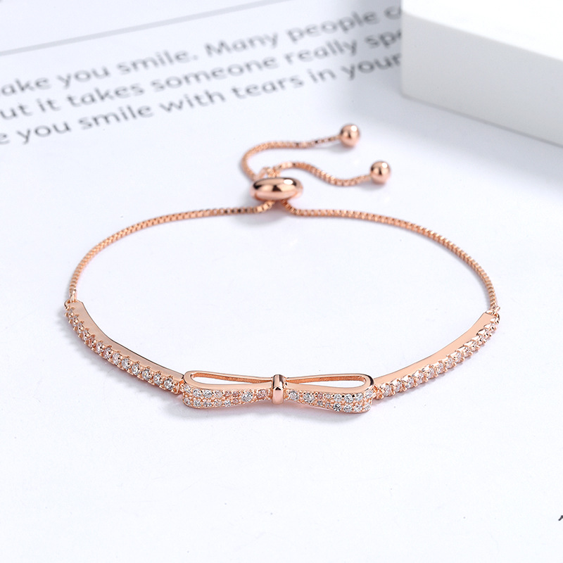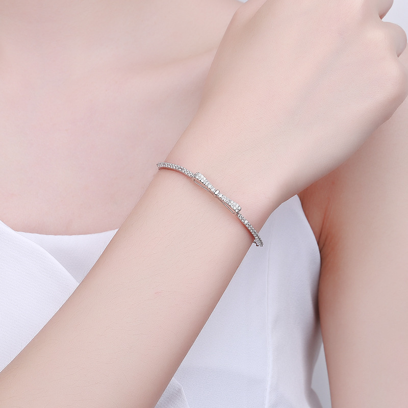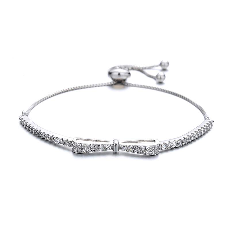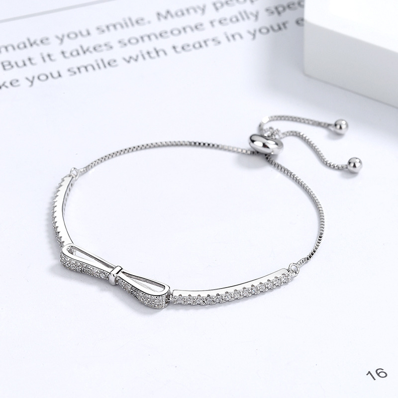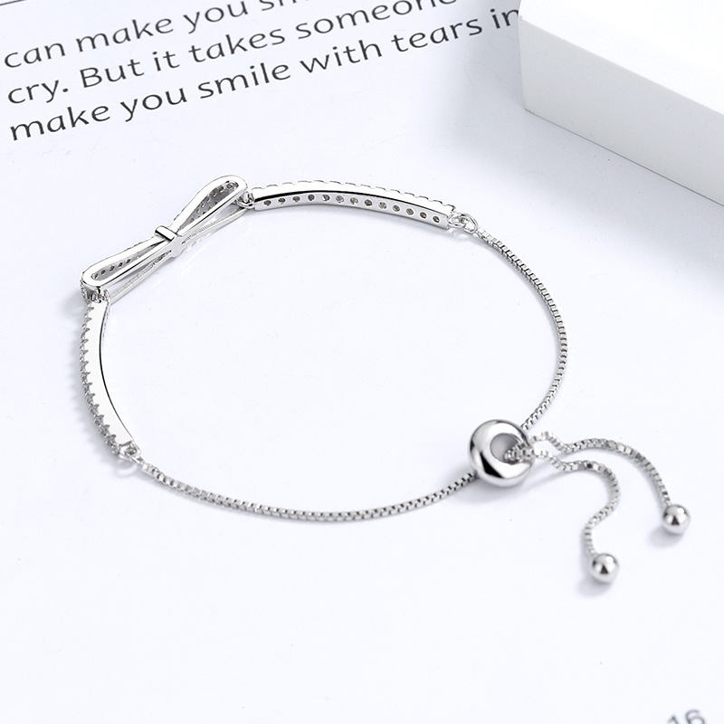 甜美蝴蝶结锆石银手链女式日韩ins纯银925可伸缩珠调节闺蜜手饰品