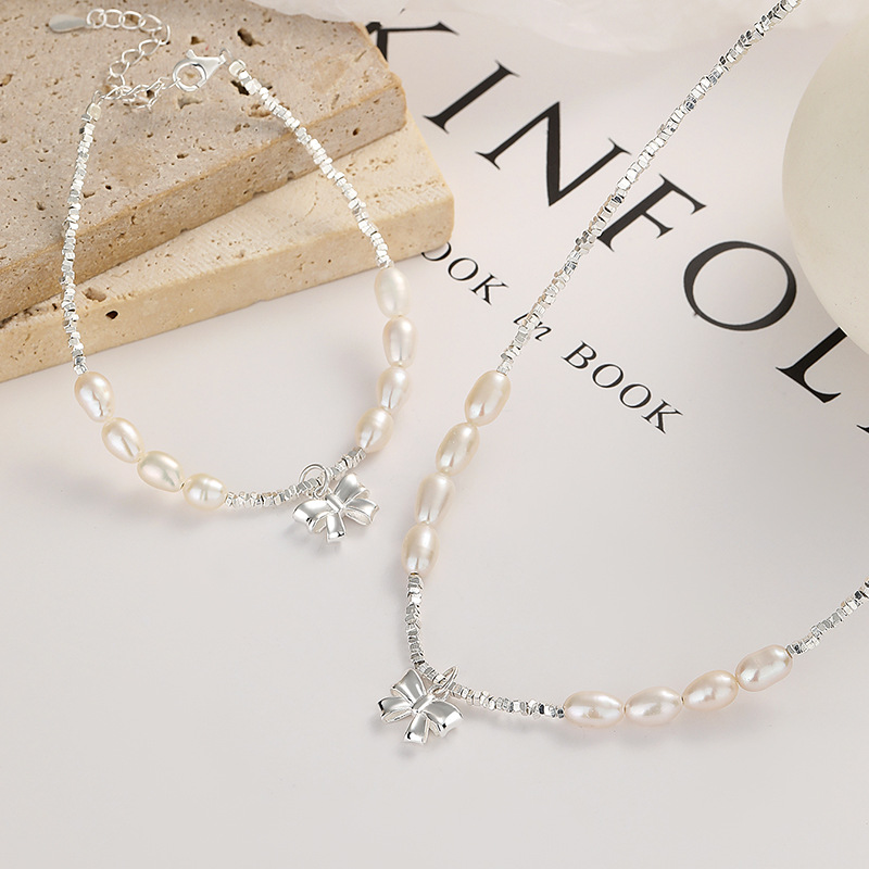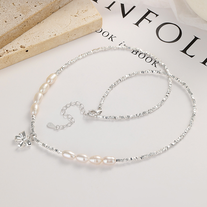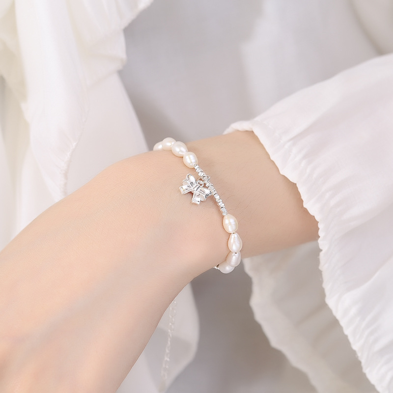 925纯银蝴蝶结珍珠碎银子手链女新款个性设计感手饰ins气质手饰品