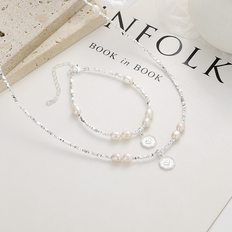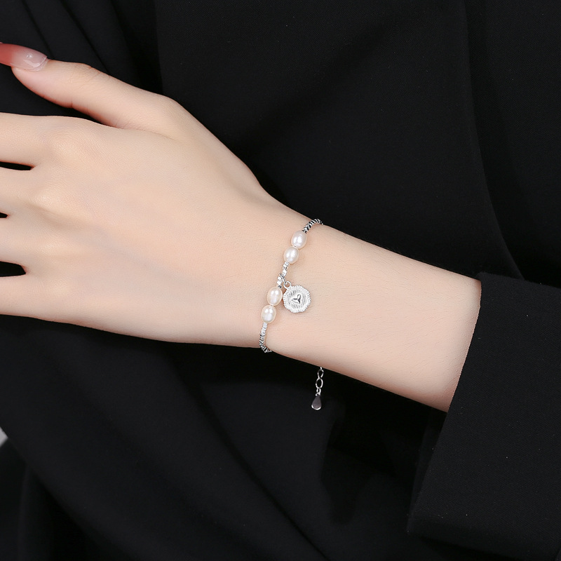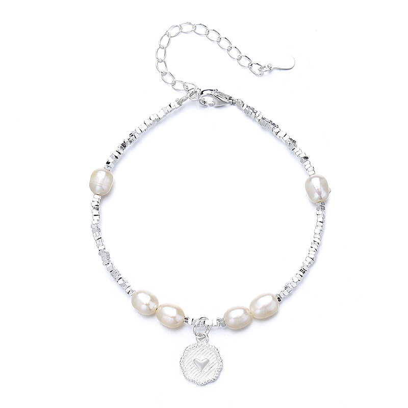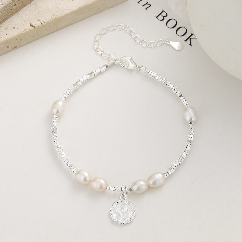 925纯银碎银几两珍珠手链女夏时尚爱心牌手链简约ins高级感手饰品