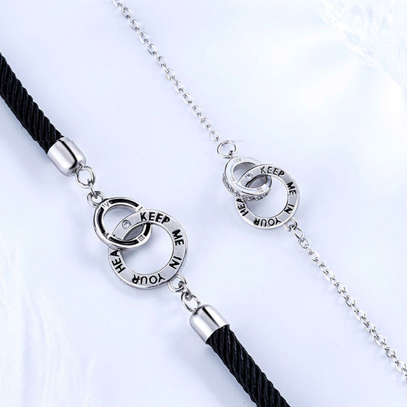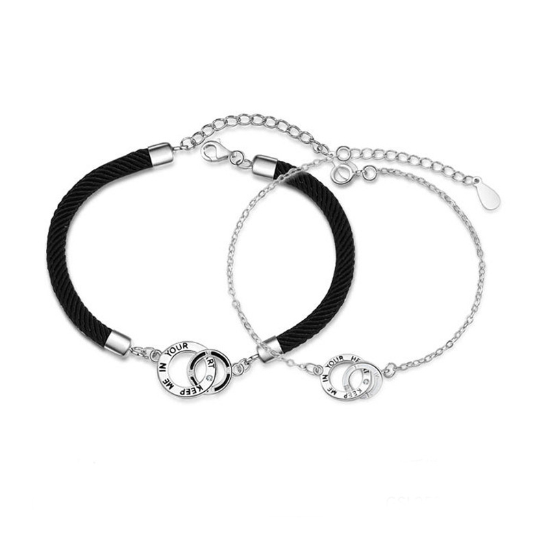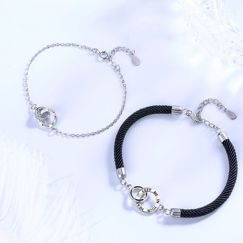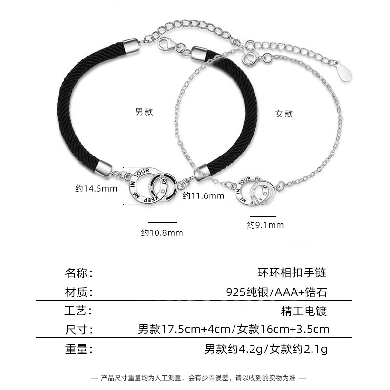 环环相扣情侣手链S925纯银双环编织手绳小众设计异地恋送女友手饰