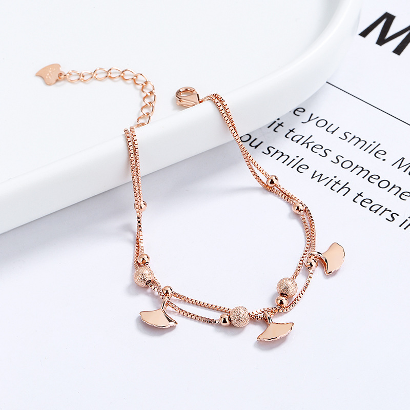 925纯银三生有杏手链情人节礼物个性设计银杏磨砂珠时尚百搭手链