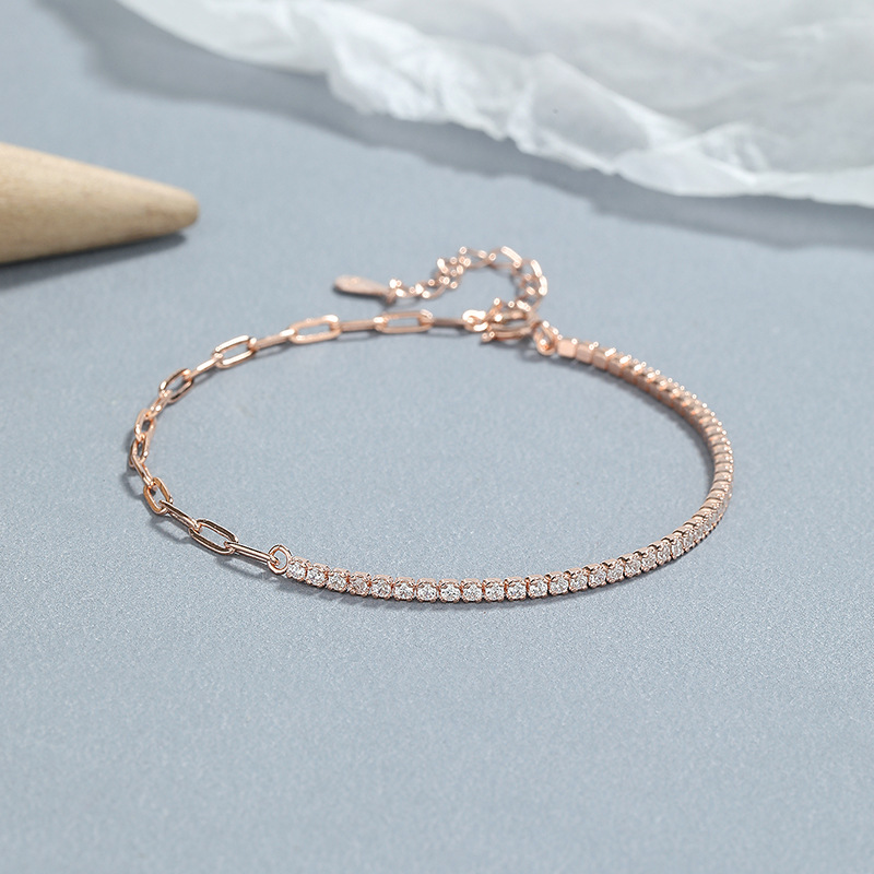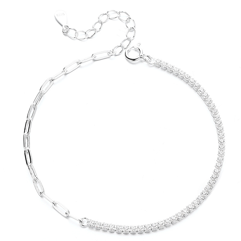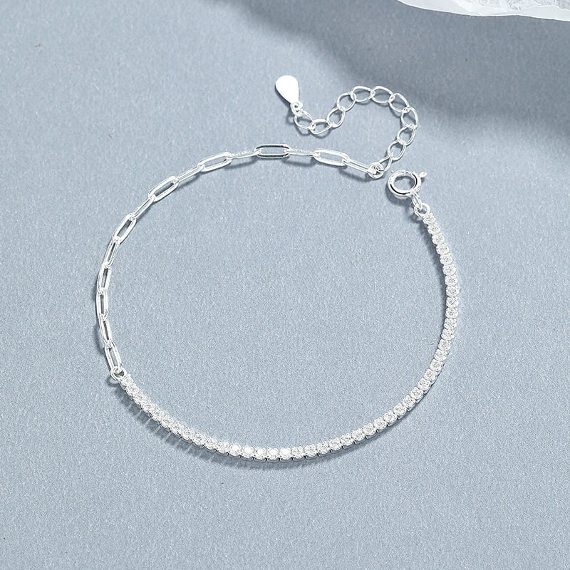 925纯银排钻盒子链手链女新款简约ins百搭手饰个性气质银饰品