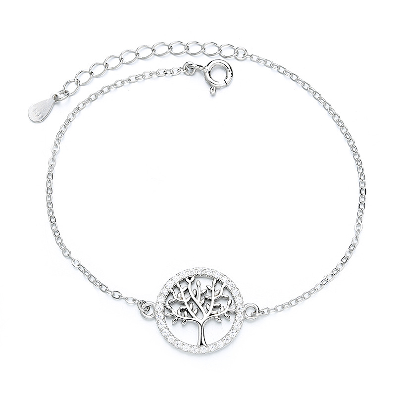 925纯银生命之树手链女ins小众设计镂空叶子脚链跨境亚马逊手饰品
