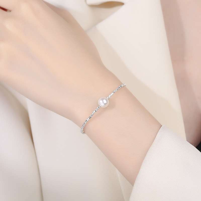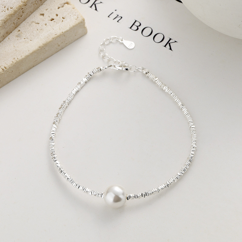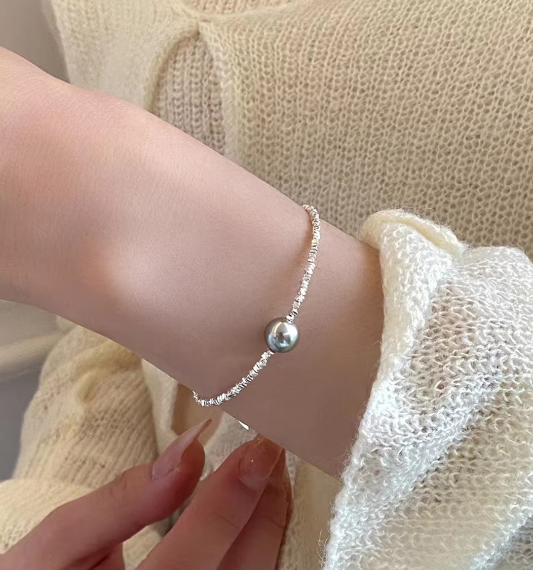 925纯银珍珠碎银子手链女新款个性设计感手链轻奢气质银饰品