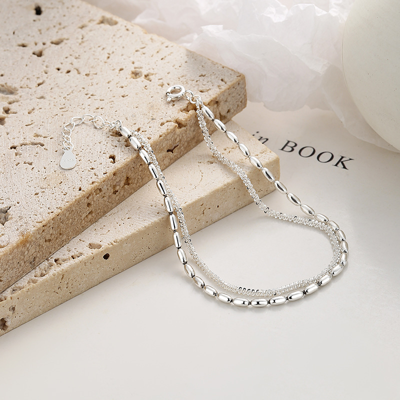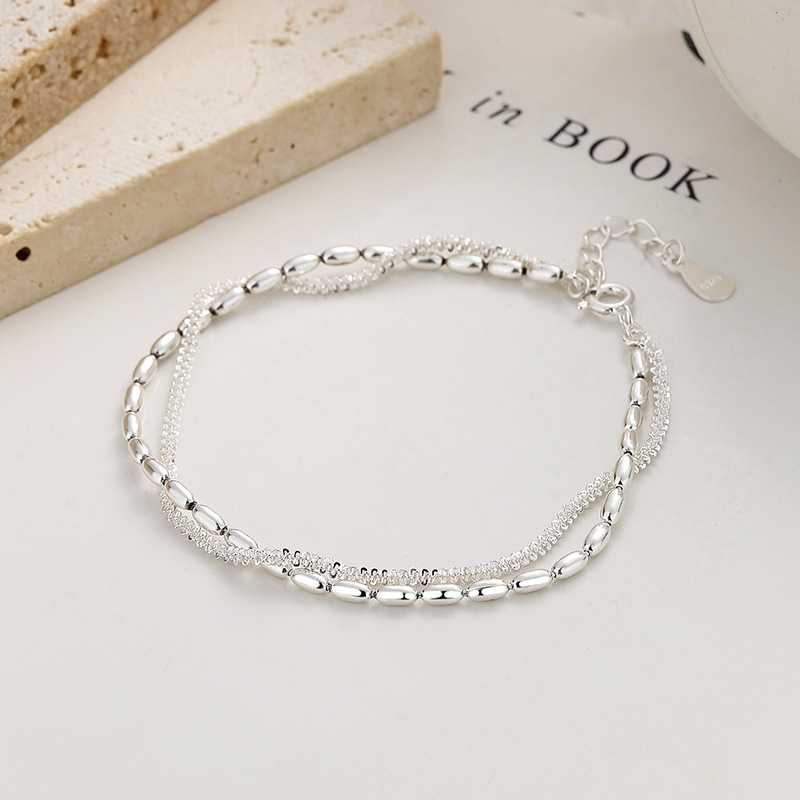 925纯银米粒菜花链手链女双层波光粼粼满天星手链个性气质手饰品