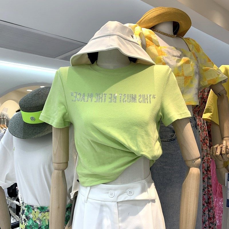 夏季韩版休闲简约烫钻字母设计感短款显瘦纯棉短袖t恤女上衣