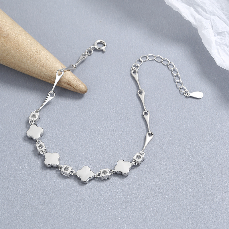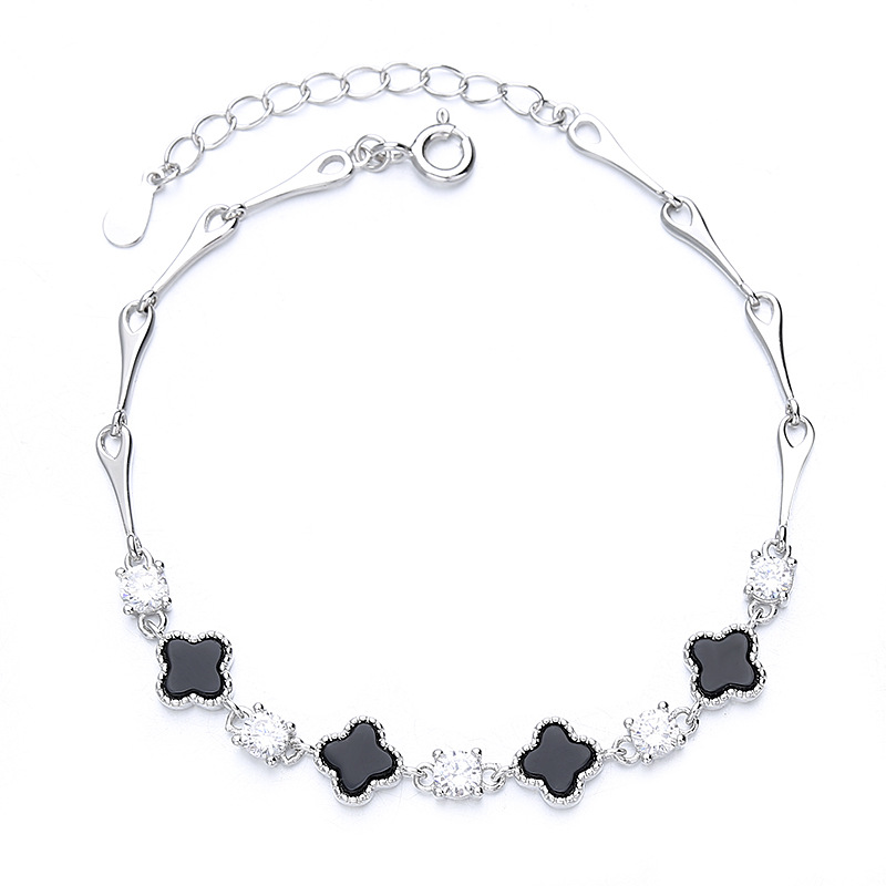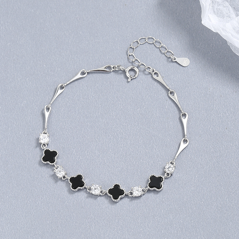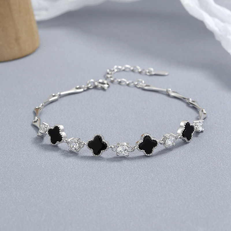 925纯银小清新四叶草手链女新款时尚黑玛瑙手饰简约ins气质手饰品