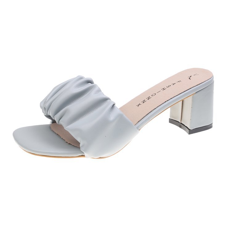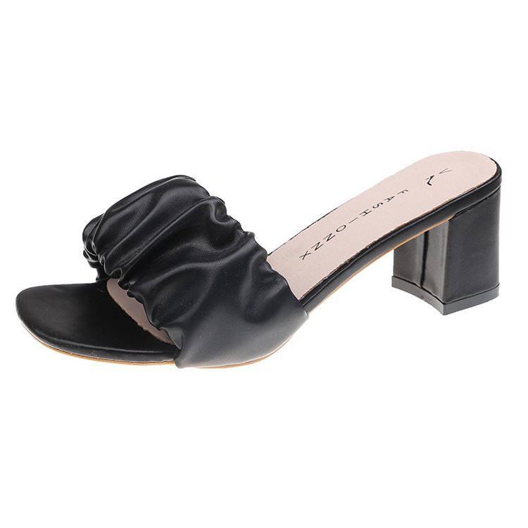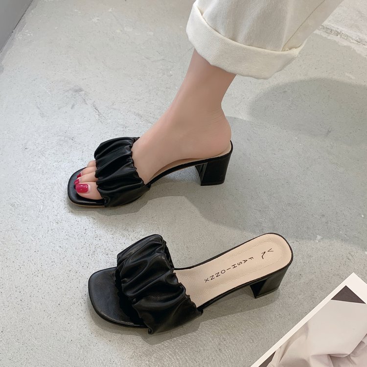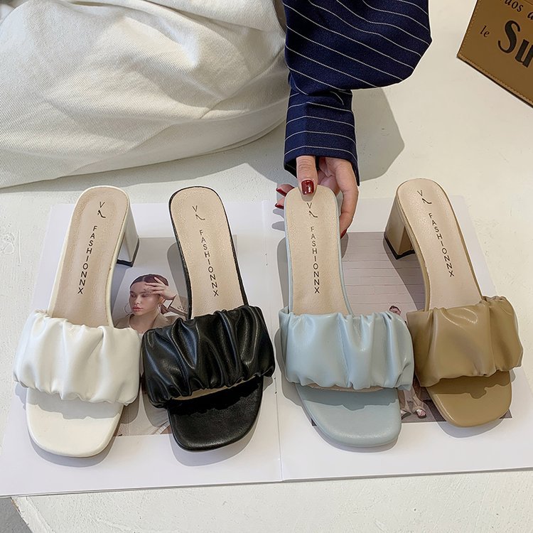 夏季新款仙女风云朵拖鞋女粗跟露趾一字拖方头高跟凉拖