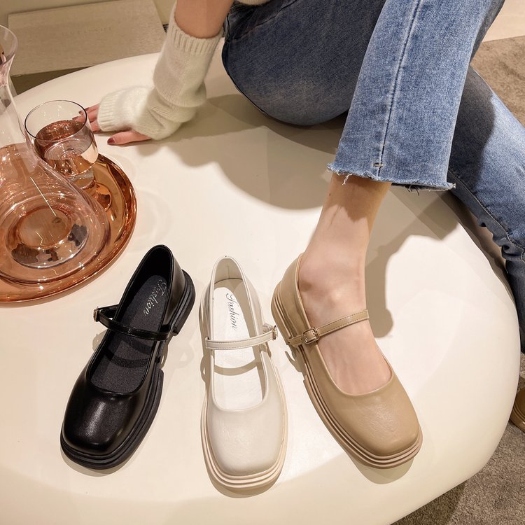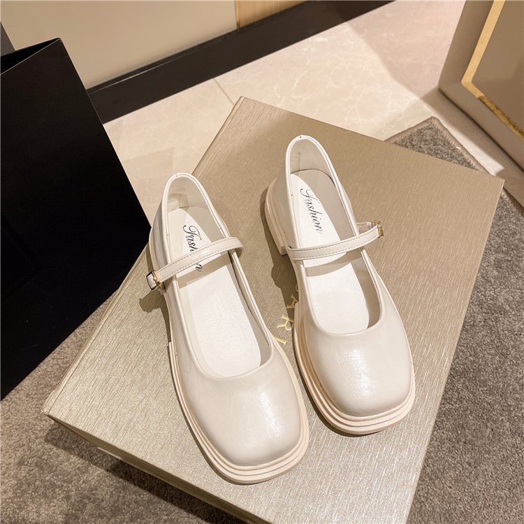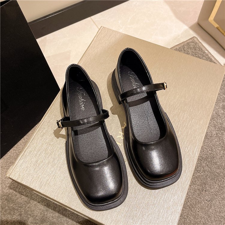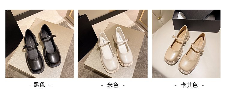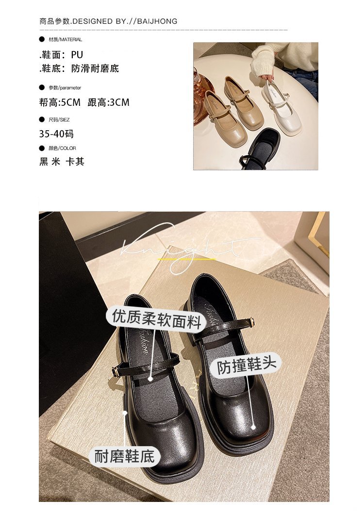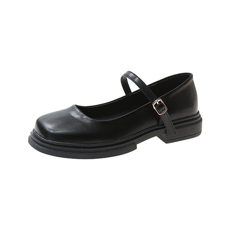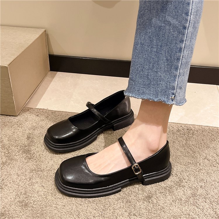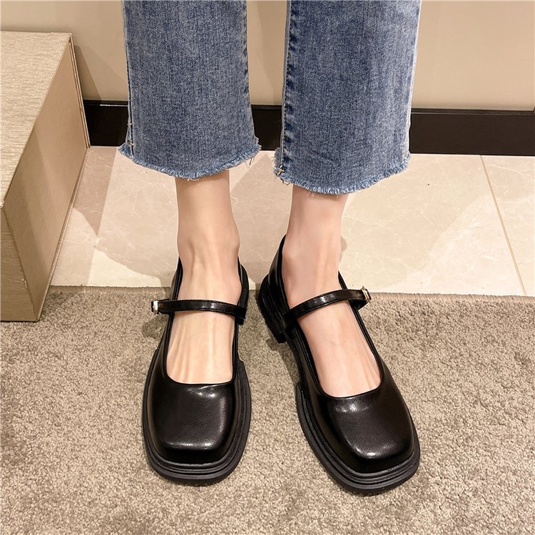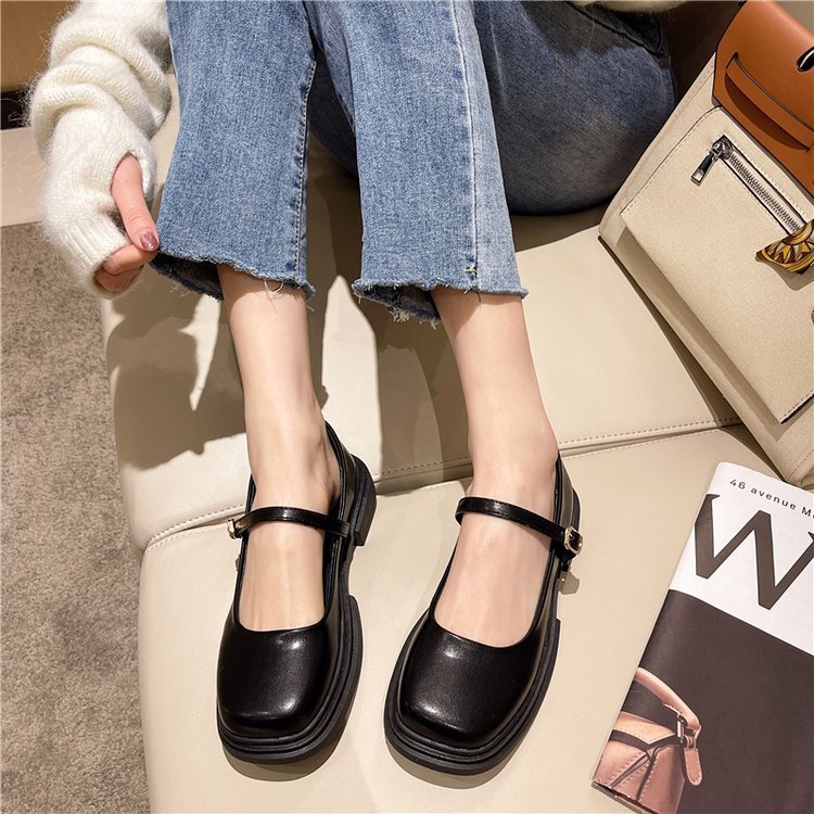 夏季新款方头浅口单鞋女一字搭扣平底玛丽珍学院风小皮鞋