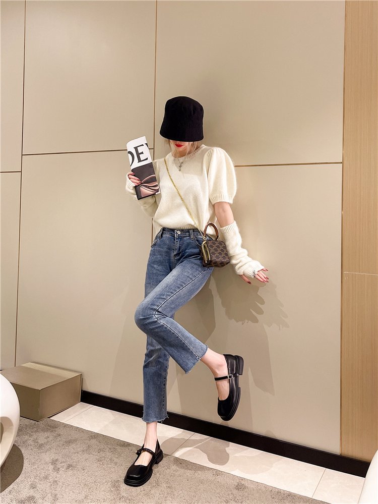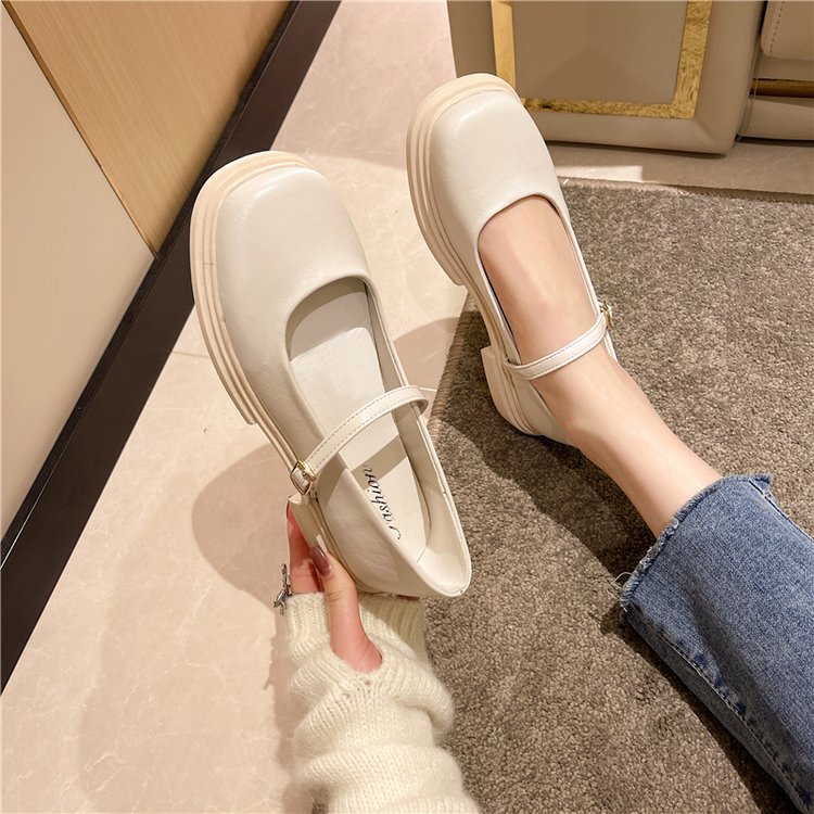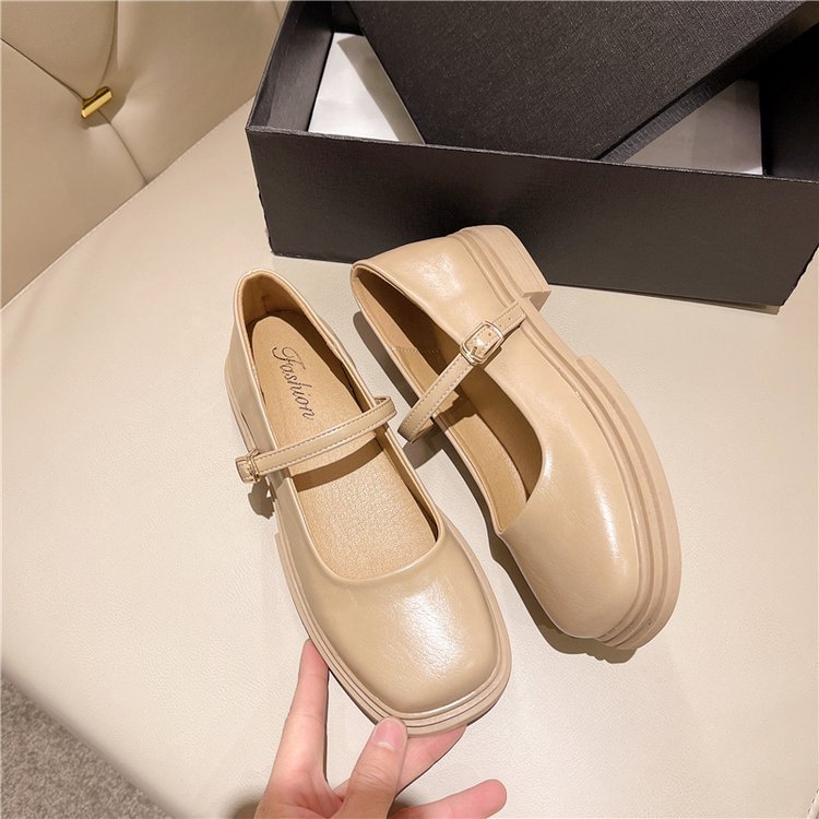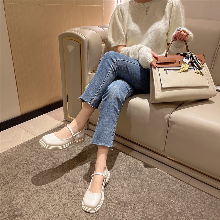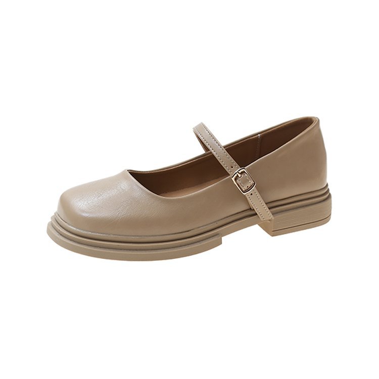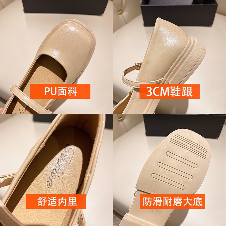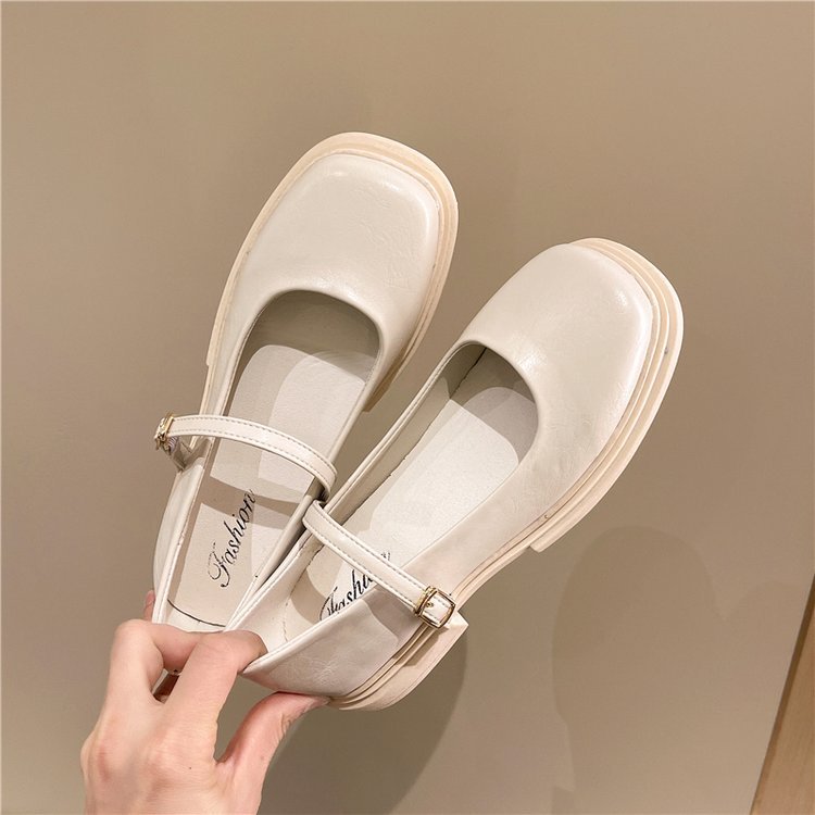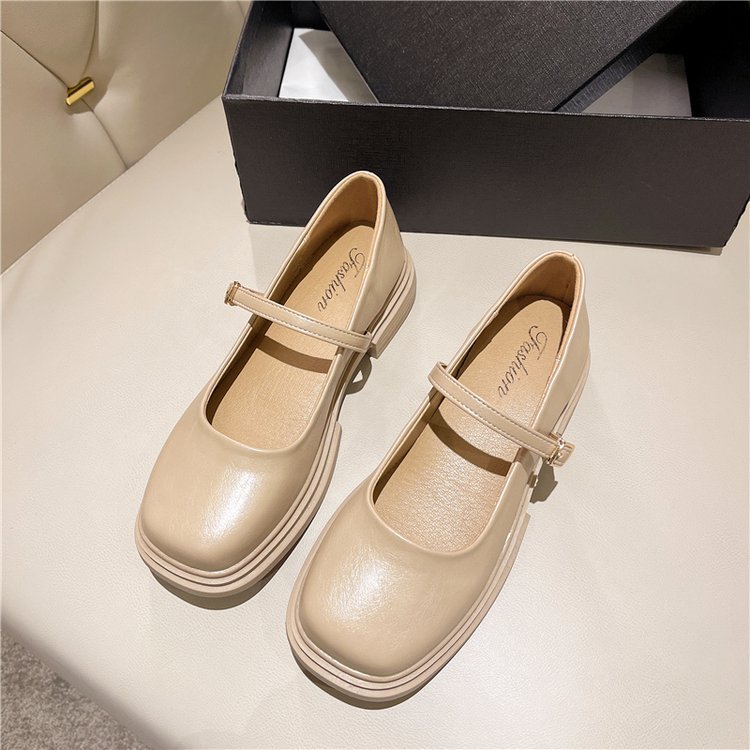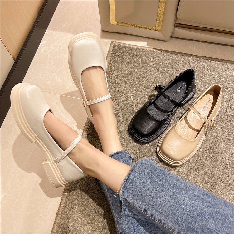 夏季新款方头浅口单鞋女一字搭扣平底玛丽珍学院风小皮鞋