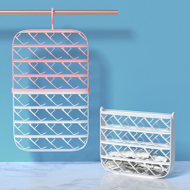 袜子晾晒篮内衣晾晒架学生宿舍阳台晒衣收纳挂架可折叠粉白
