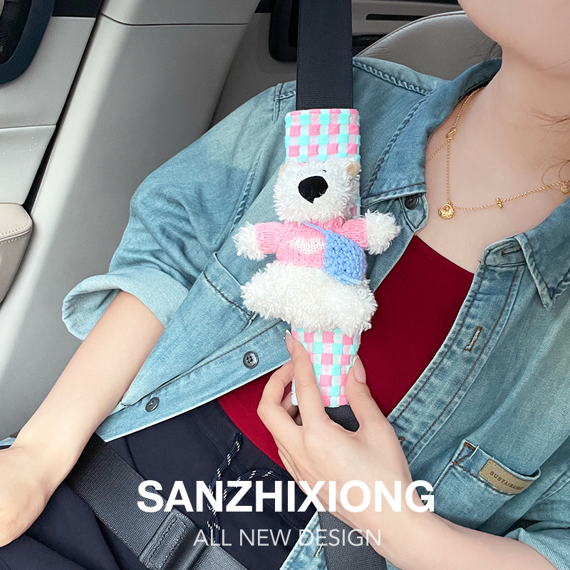 毛绒潦草狗汽车安全带护肩套创意车载安全带防勒保护套车内装饰