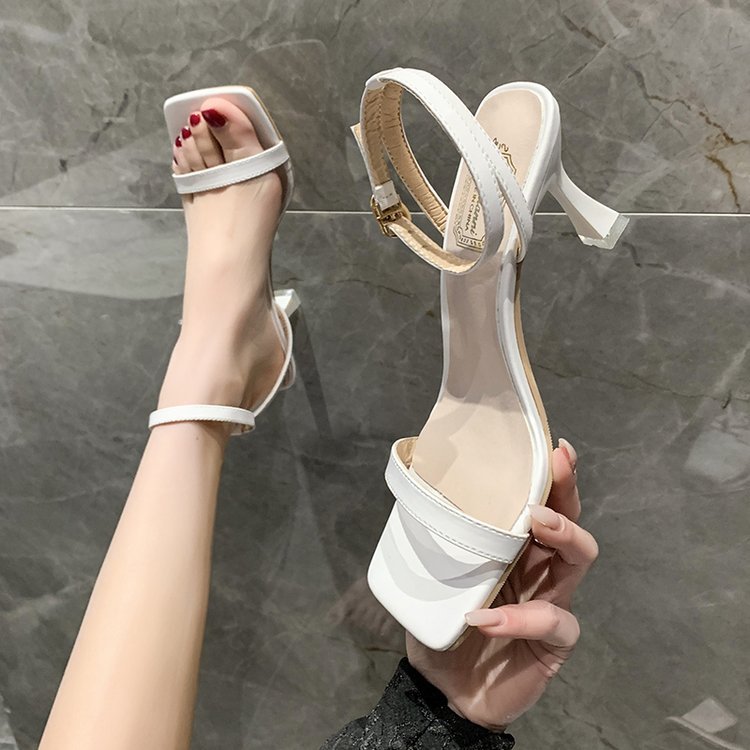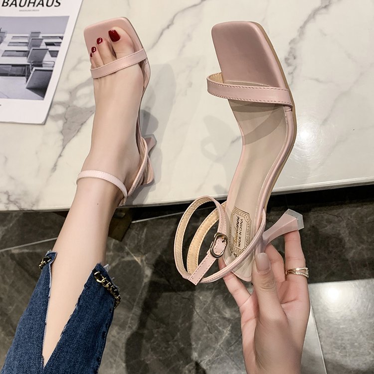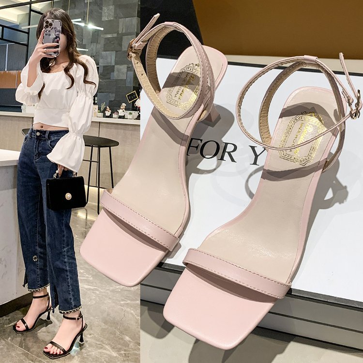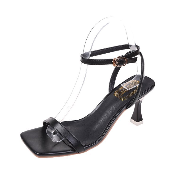 夏季新款韩版细跟凉鞋女方头露趾一字扣带时尚大码高跟鞋