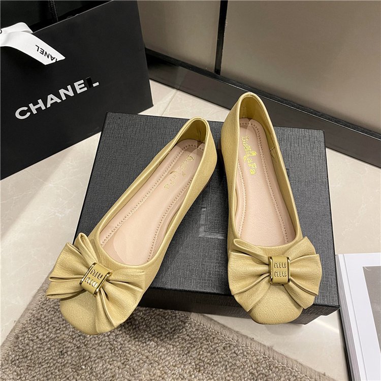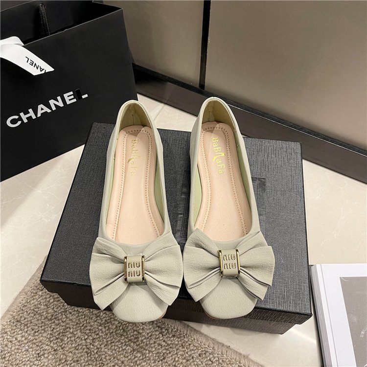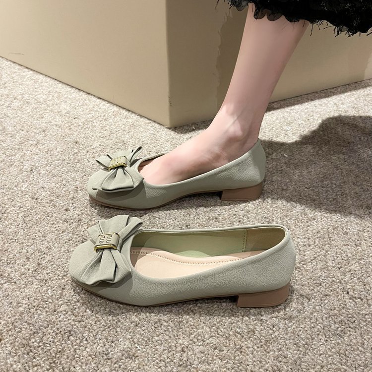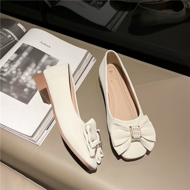 夏季新款韩版方头浅口蝴蝶结单鞋女粗跟低跟套脚女鞋