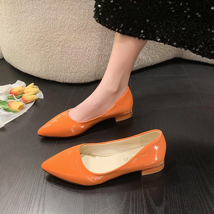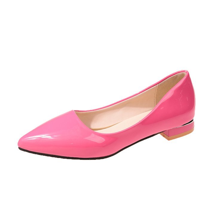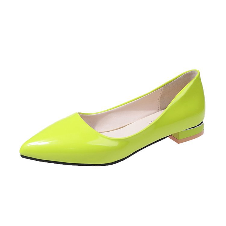 夏季新款大码尖头单鞋女糖果色粗跟浅口漆皮低跟女鞋