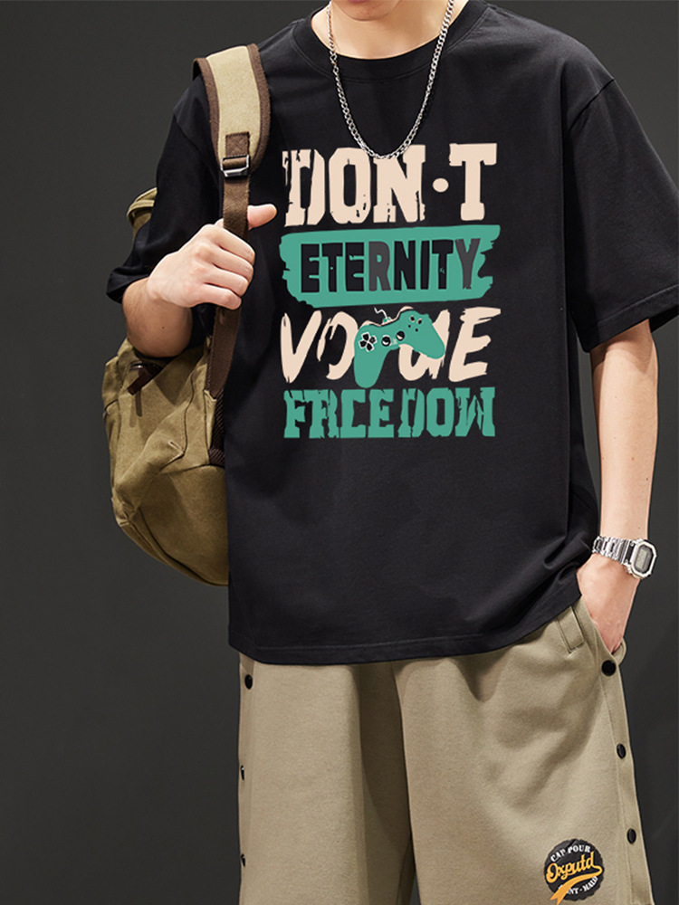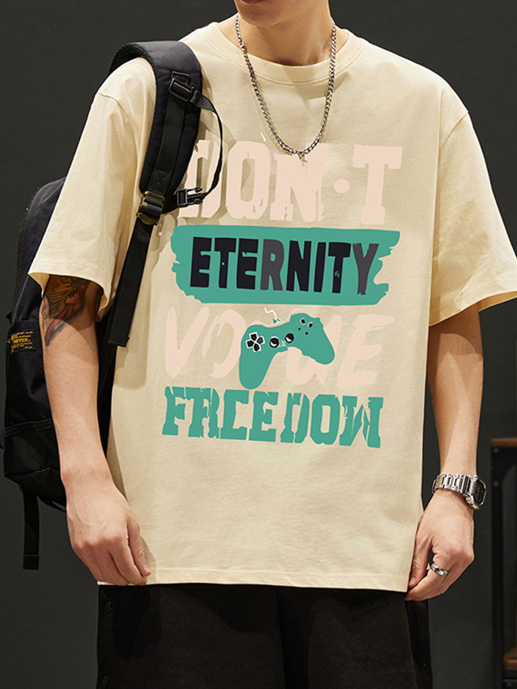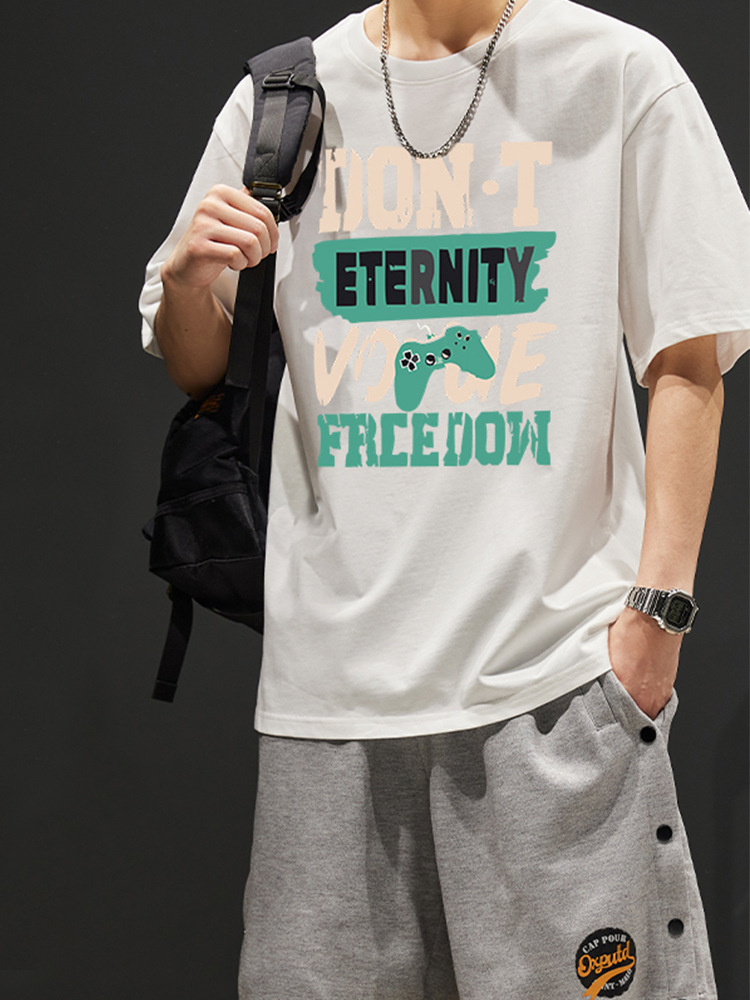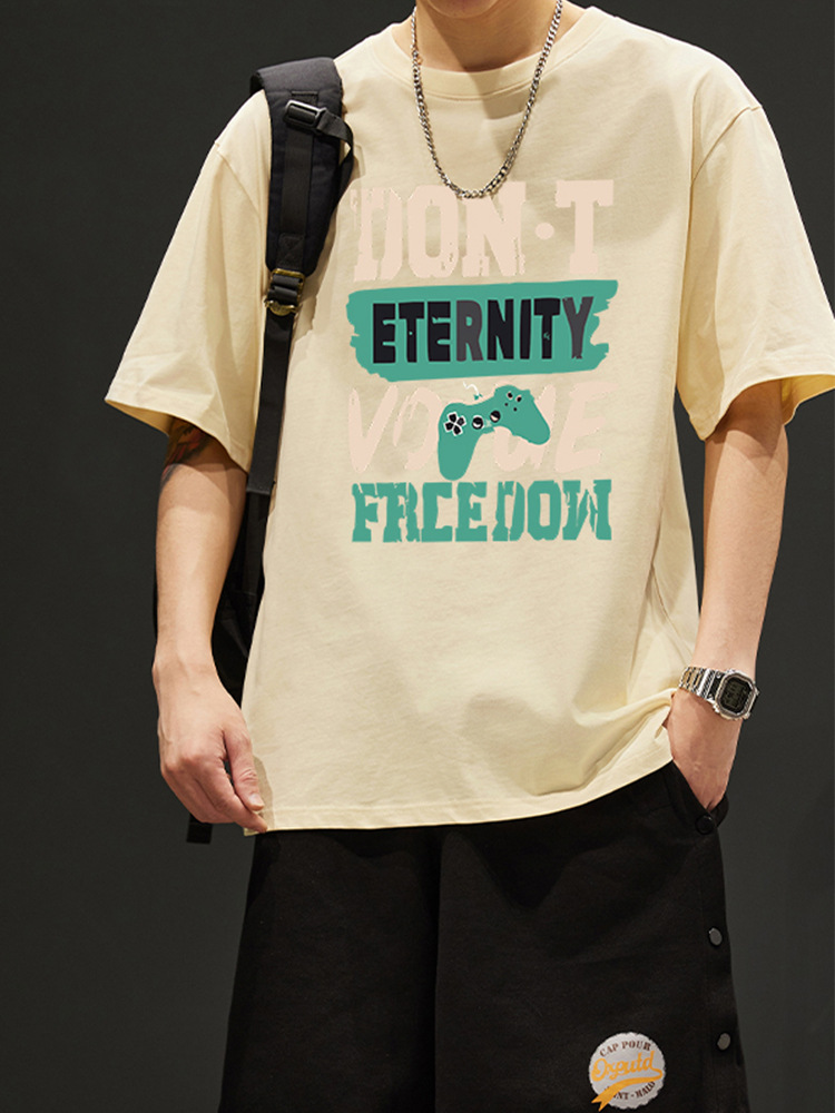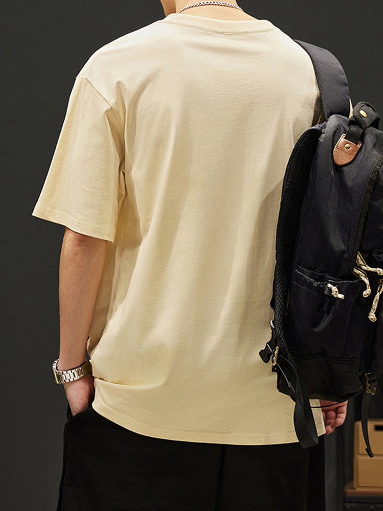 纯棉T恤男装美式复古宽松上衣学生百搭国潮牌圆领体恤衫