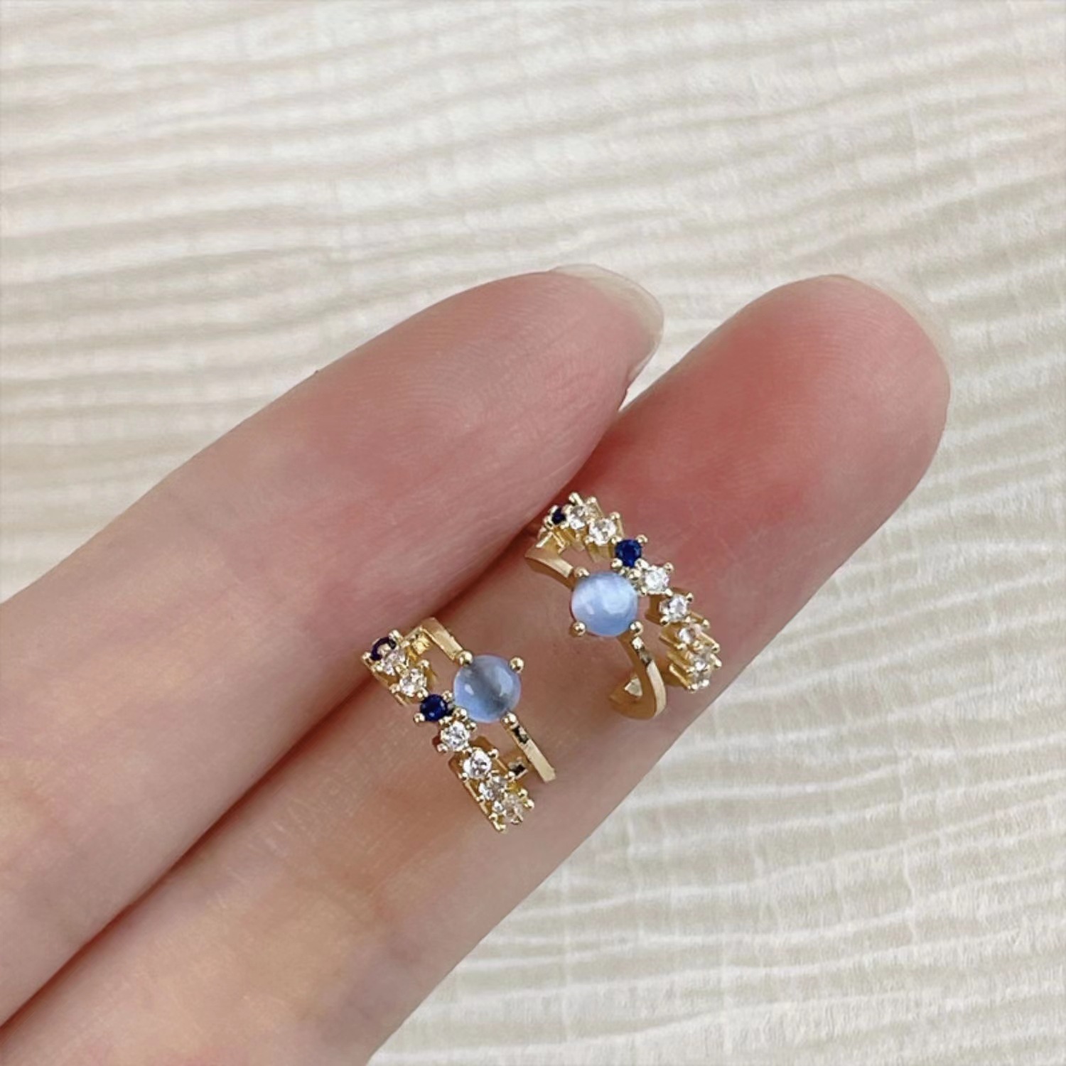 仲夏夜之星法式无耳洞蓝色 猫眼小巧耳环简约蚊香盘无痛百搭耳夹女