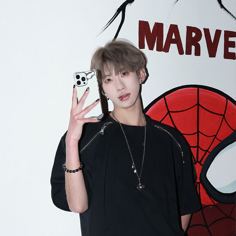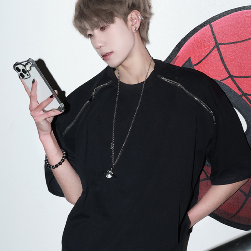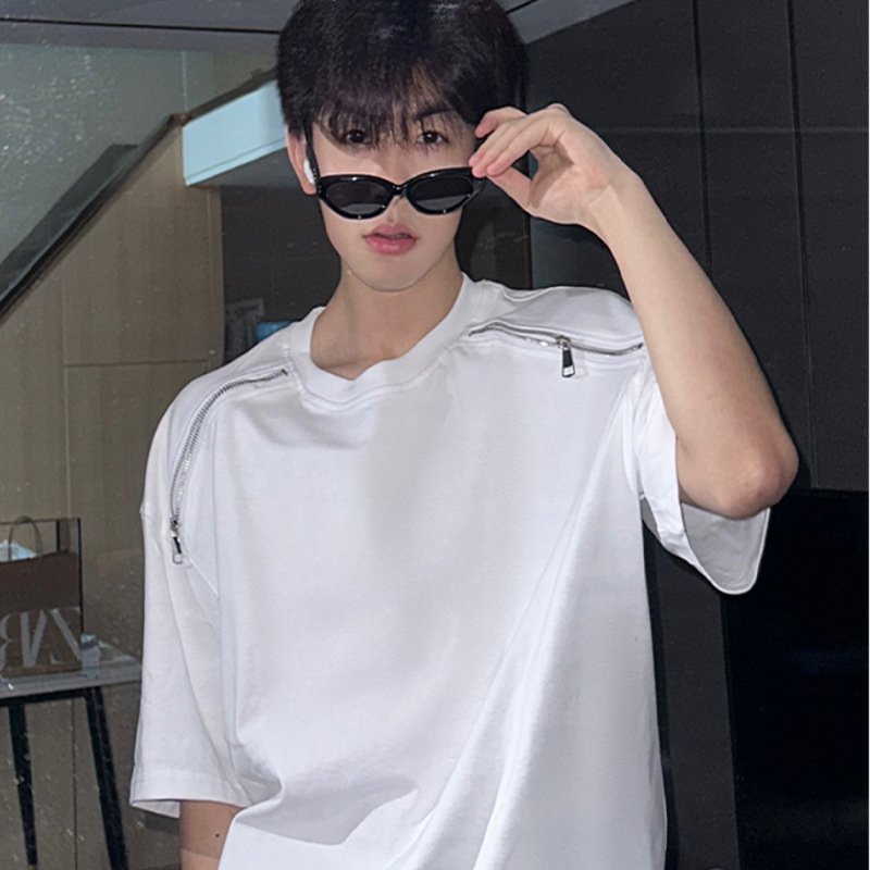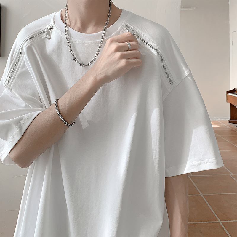 夏季新款美式短袖T恤男高街潮牌痞帅拉链小众设计感宽松休闲半袖