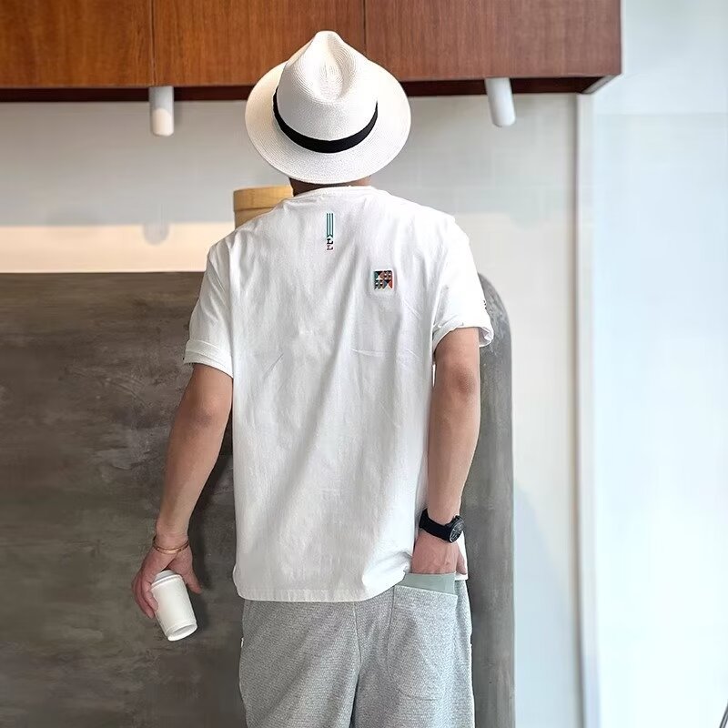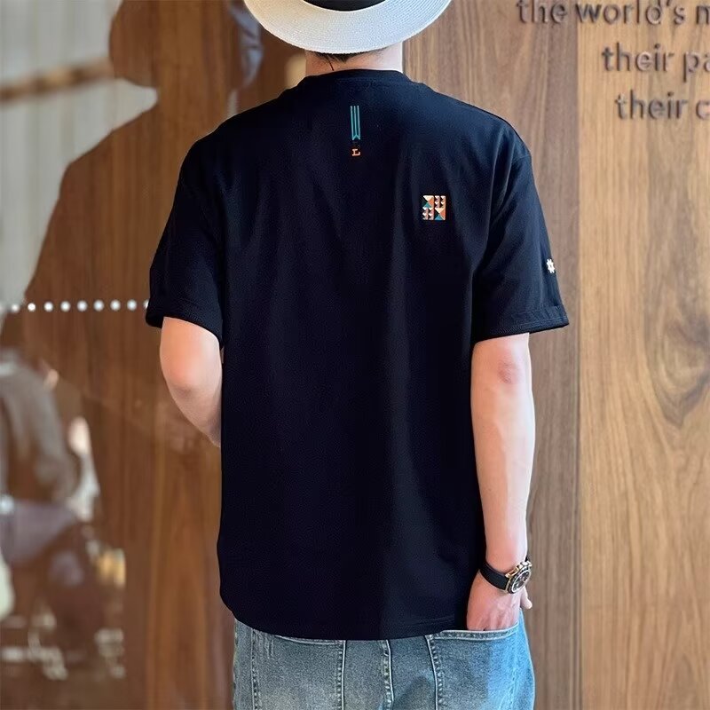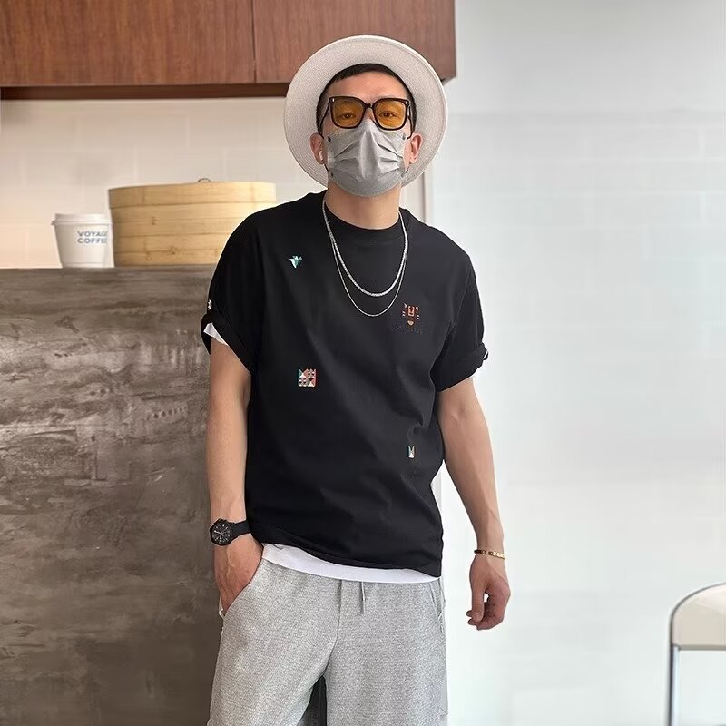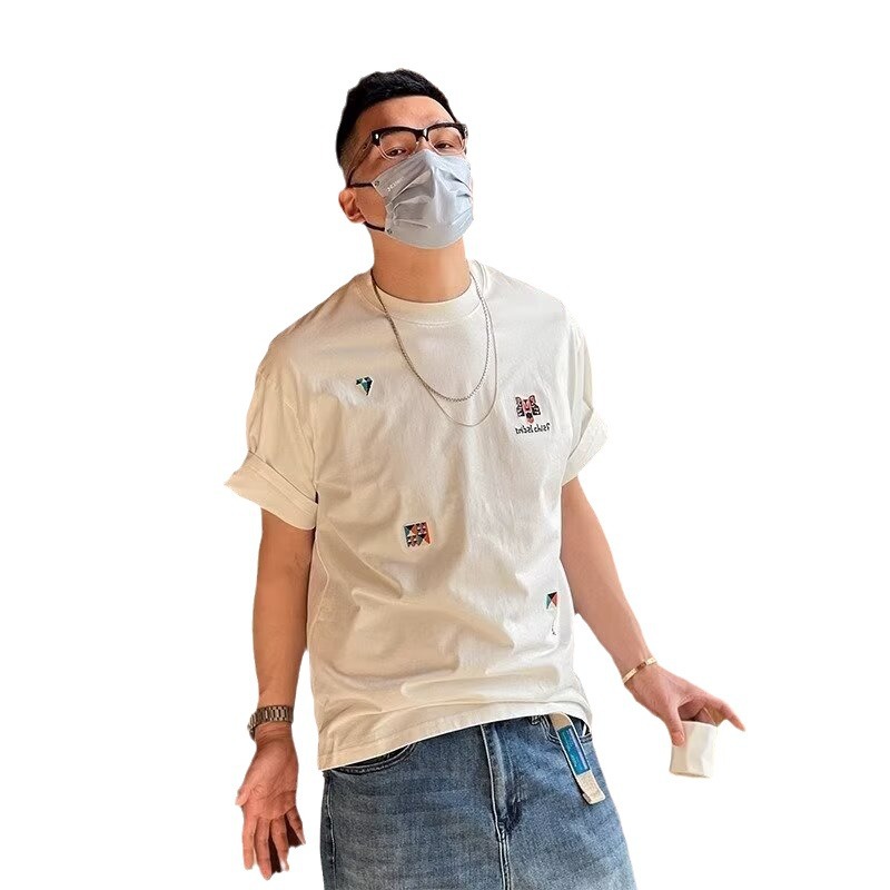 设计感小众刺绣纯棉短袖t恤男夏季潮流高级感ins宽松半袖上衣